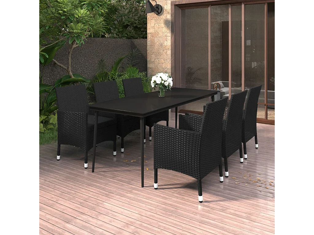 Ensemble à dîner de jardin coussins 7 pièces Résine tressée Verre