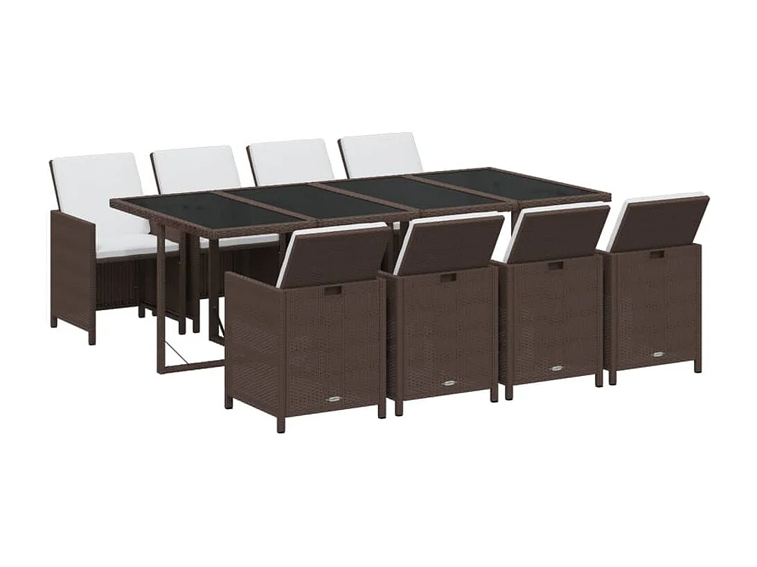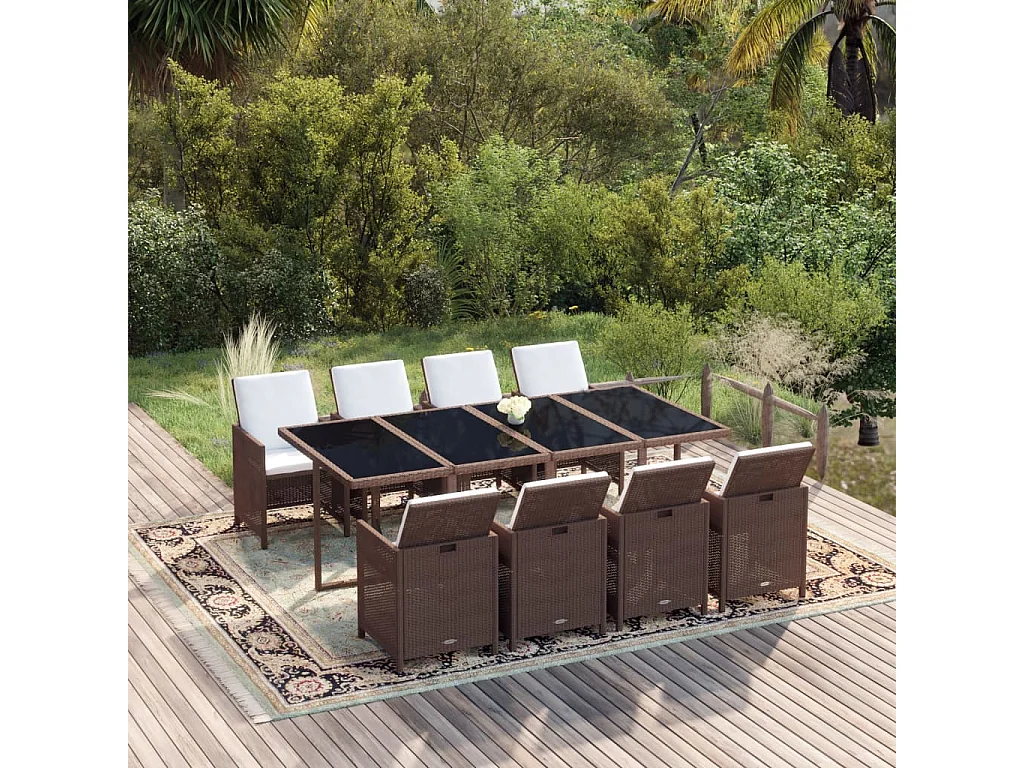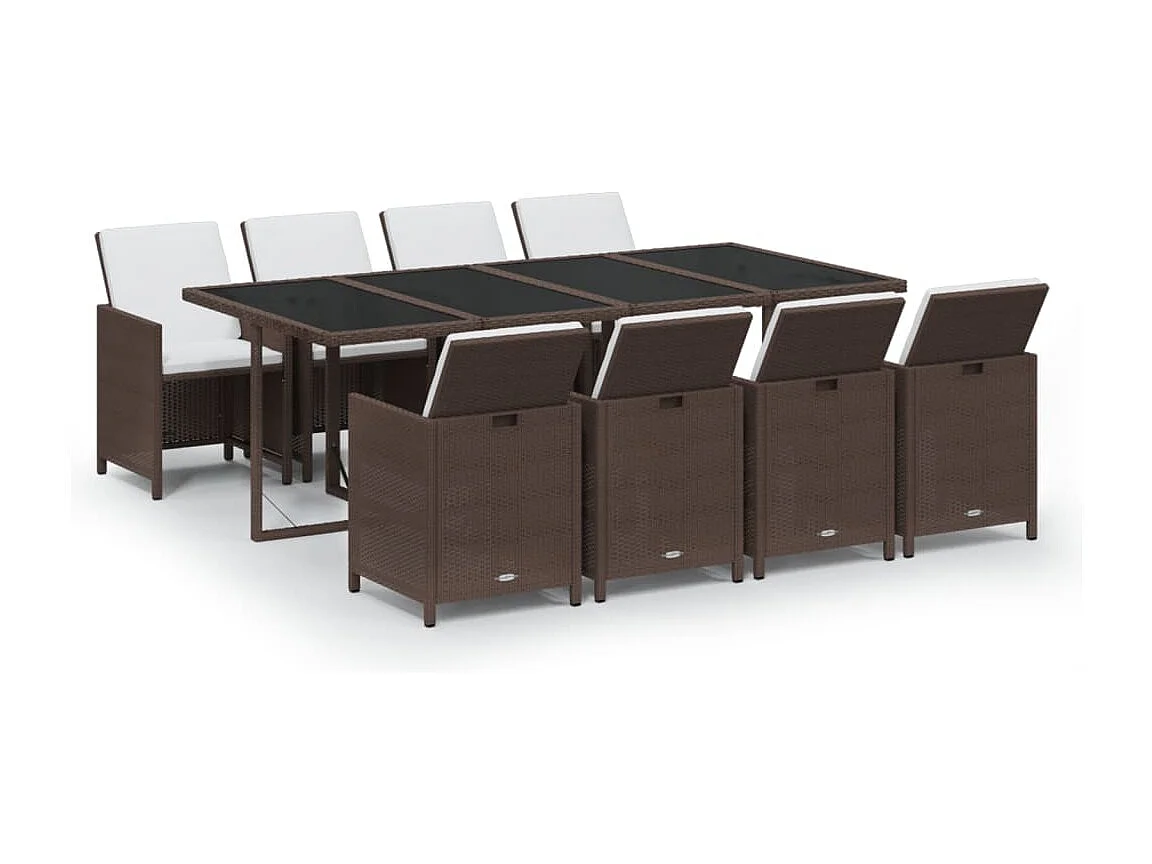 Ensemble à dîner de jardin coussins 9 pièces Résine tressée Marron