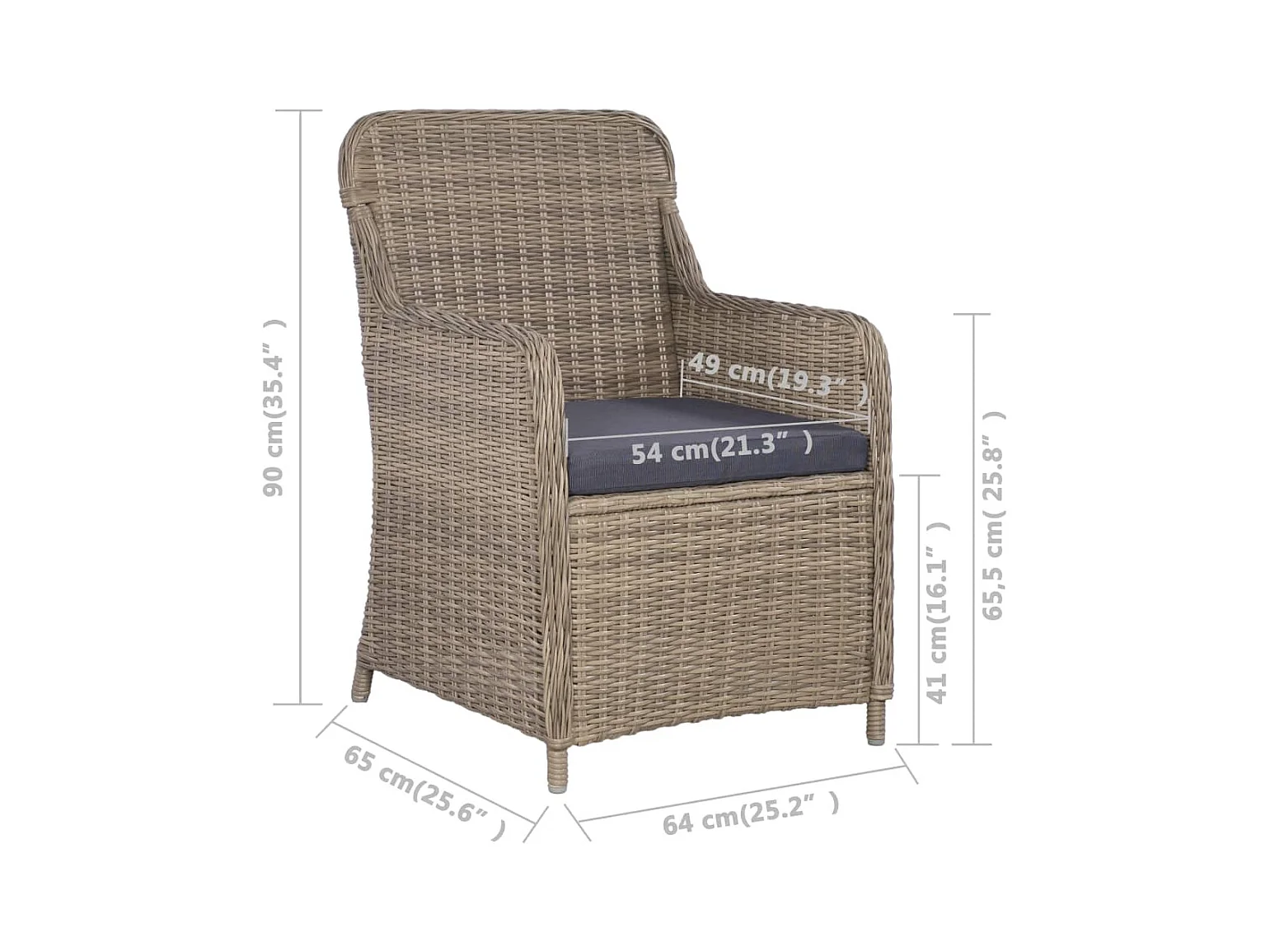 Ensemble à dîner d'extérieur 7 pièces Résine tressée Marron
