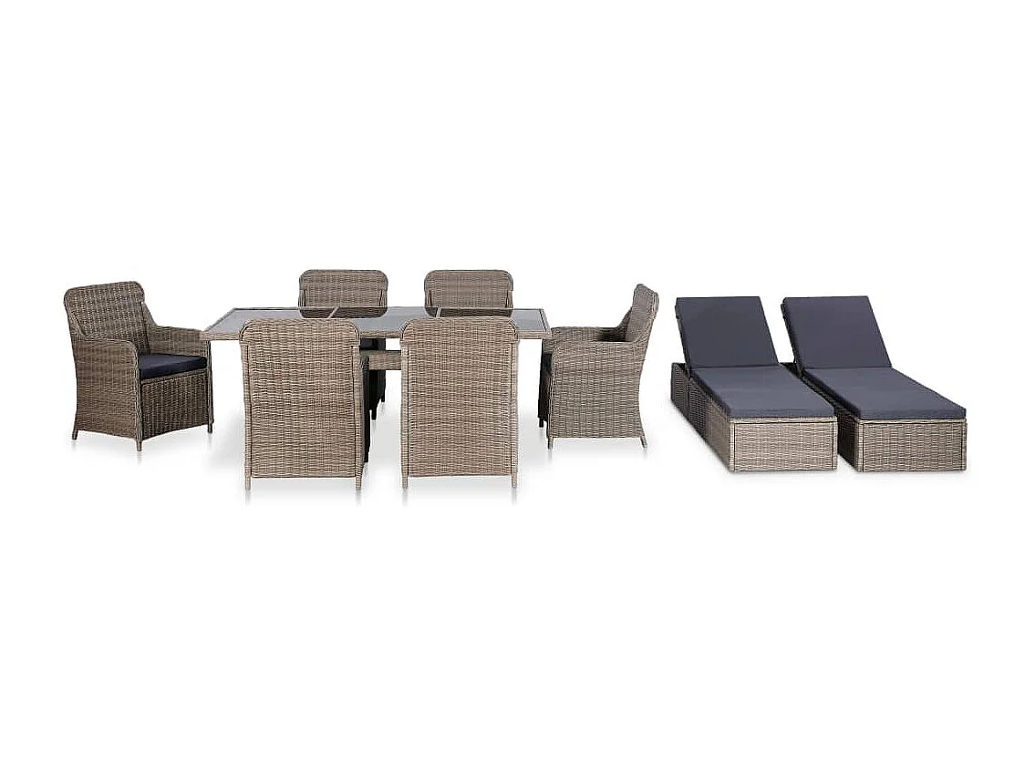 Ensemble à manger d'extérieur 9 pcs Résine tressée Marron