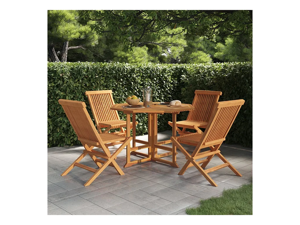 Ensemble à dîner d'extérieur pliable 5 pcs Bois solide de teck