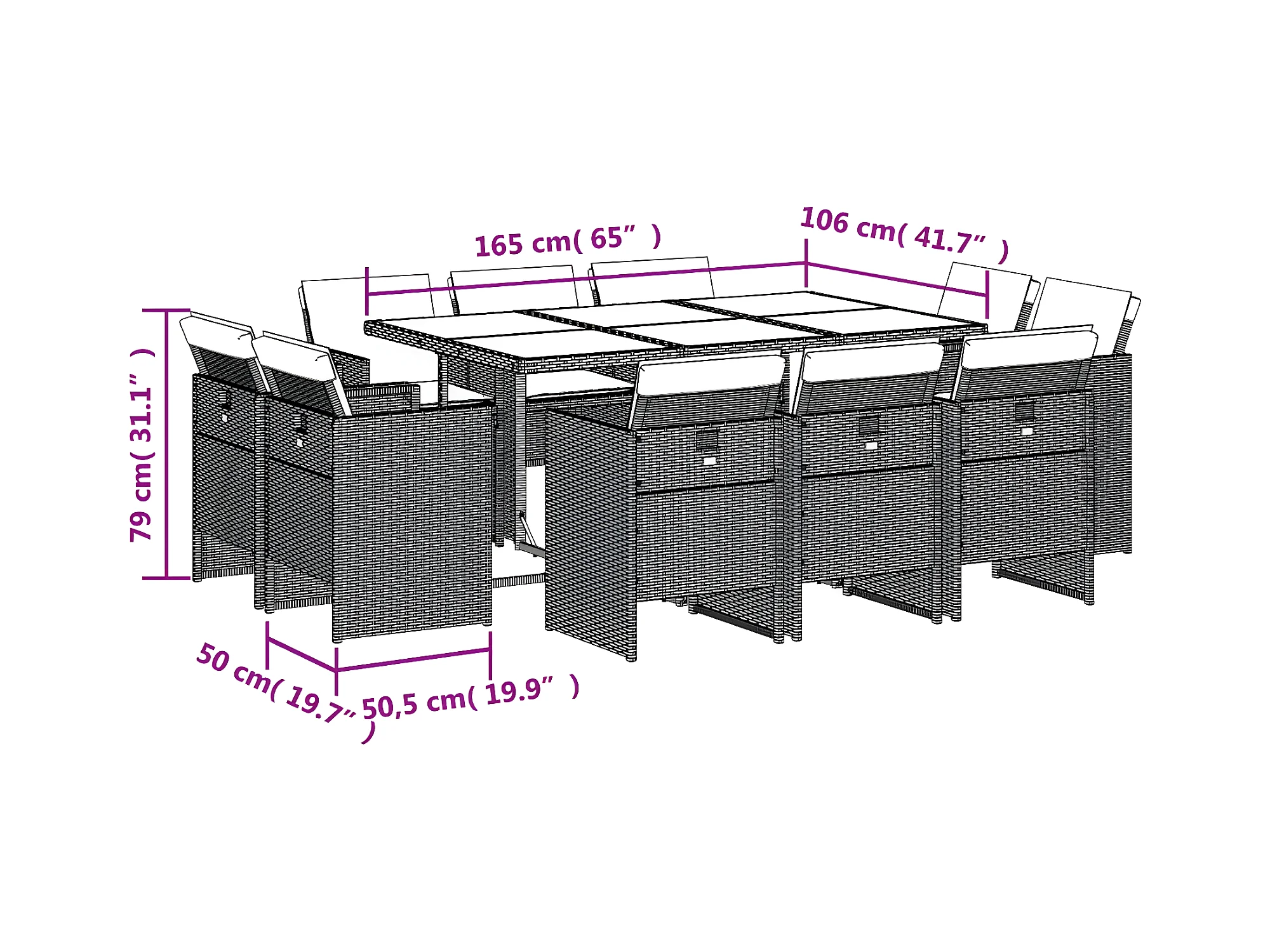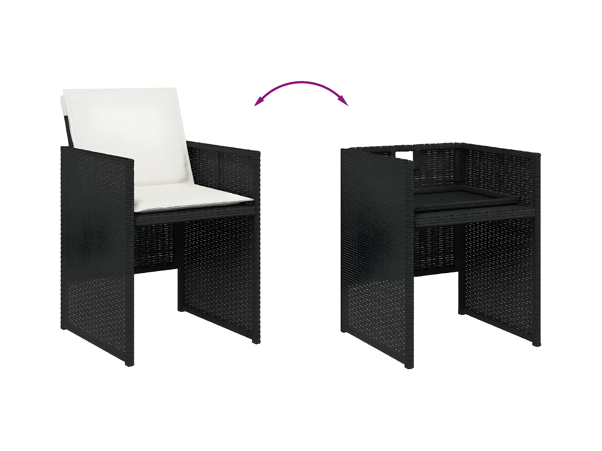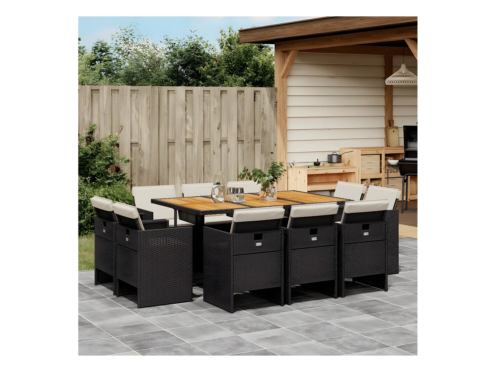 Ensemble à manger de jardin 11 pcs coussins noir résine tressée