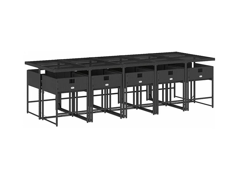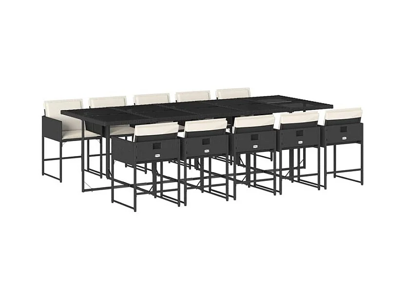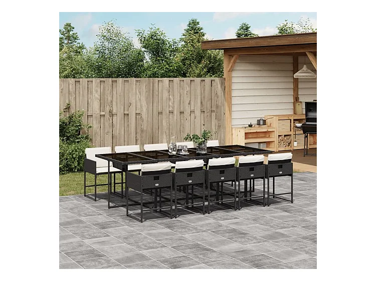 Ensemble à manger de jardin 11 pcs coussins noir résine tressée