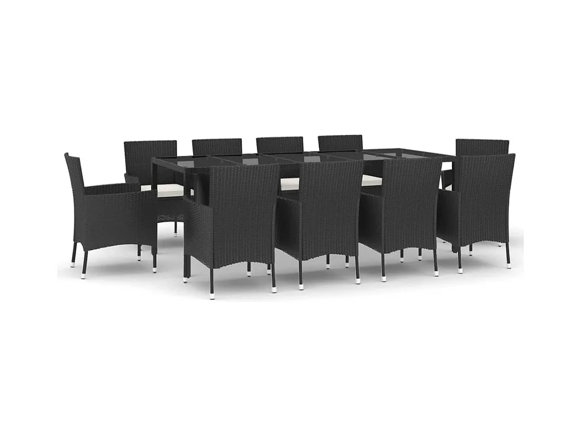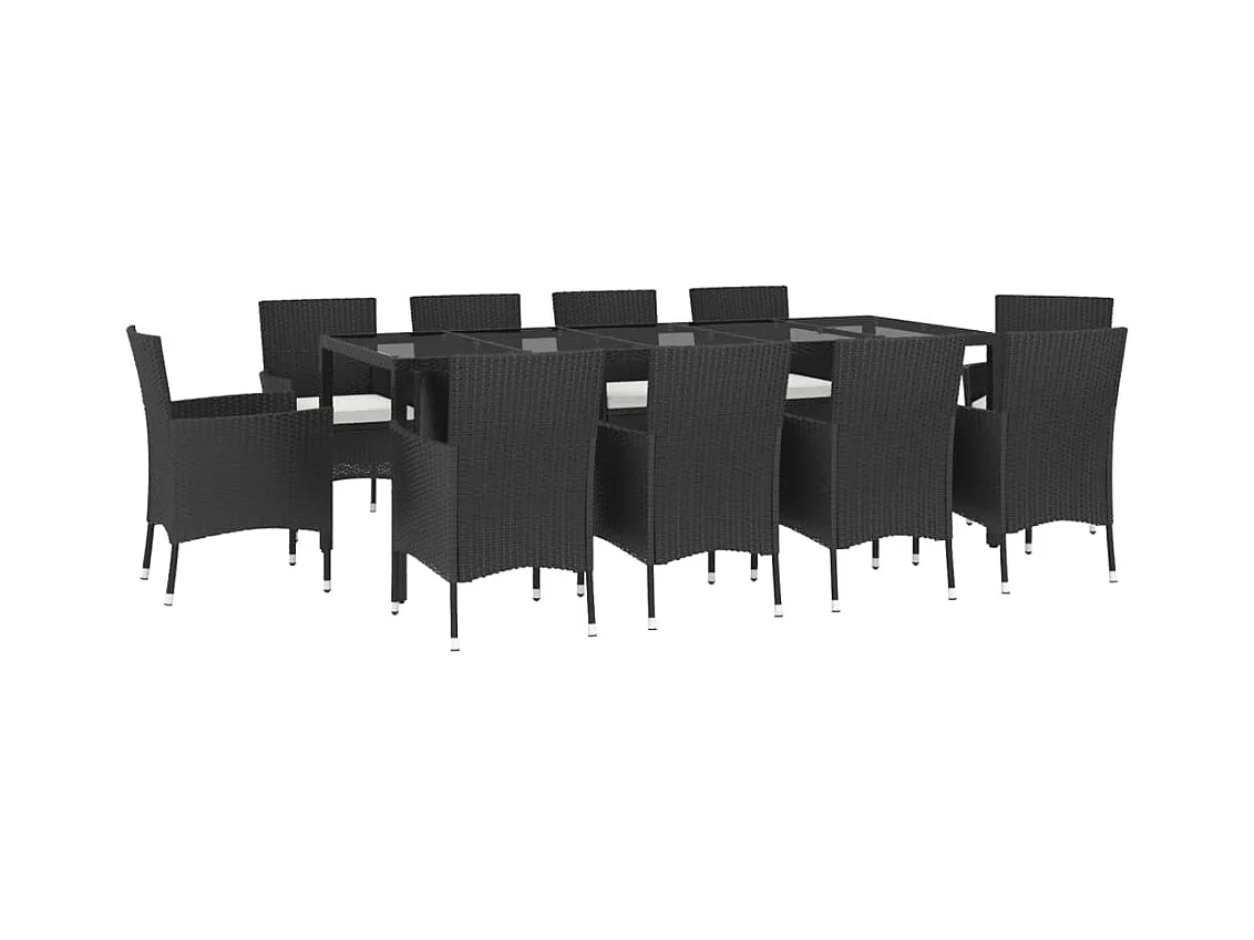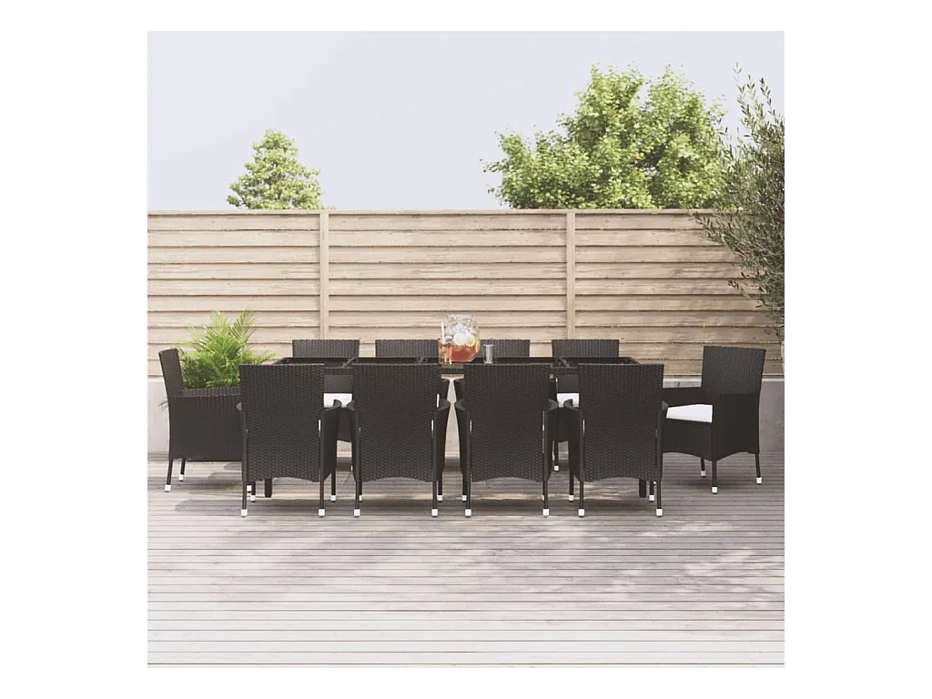 Ensemble à manger de jardin 11 pcs coussins noir résine tressée
