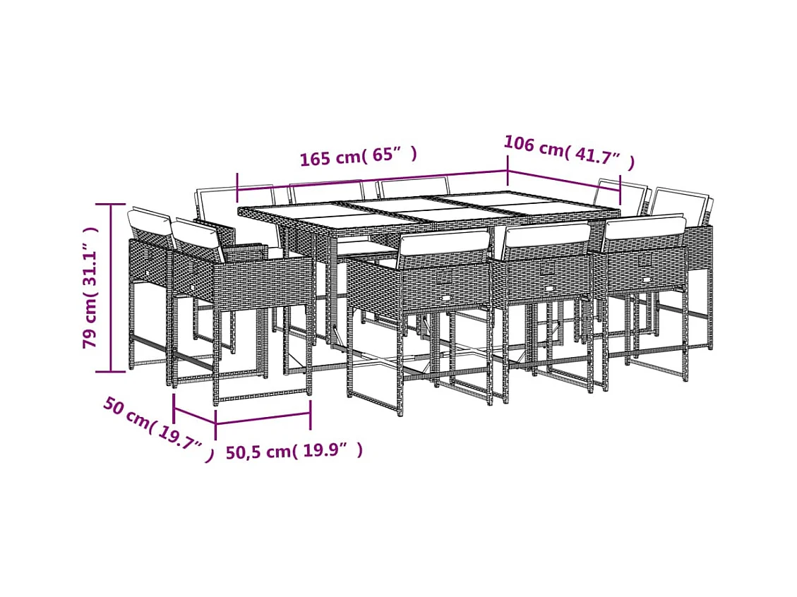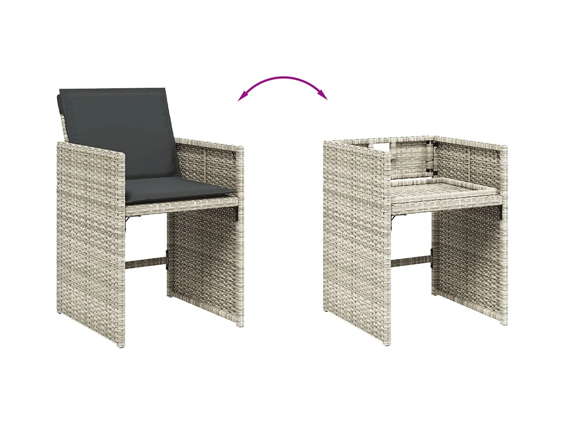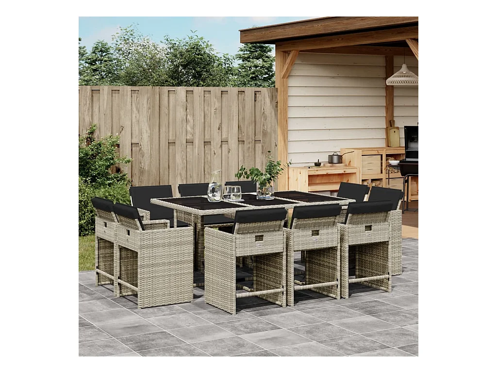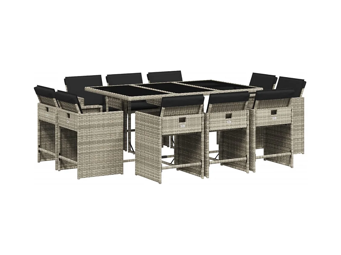 Ensemble à manger de jardin 11 pièces avec coussins gris poly rotin