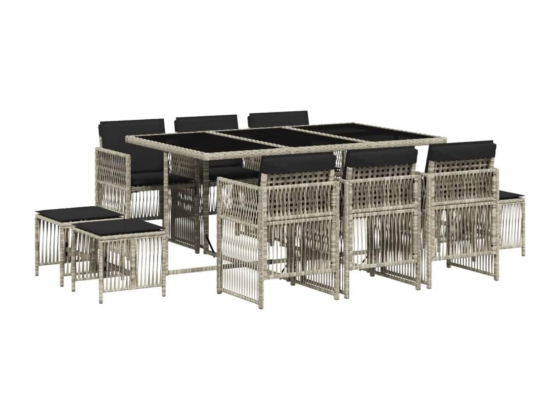 Ensemble à manger de jardin 11 pièces avec coussins gris poly rotin