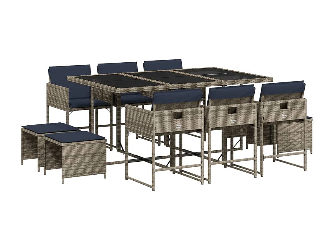 Ensemble à manger de jardin 11 pièces coussins gris résine tressée