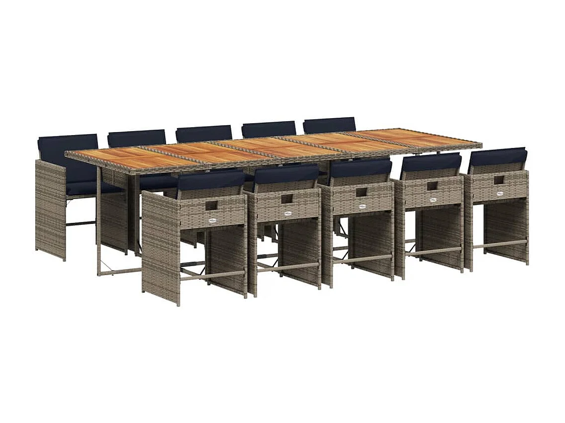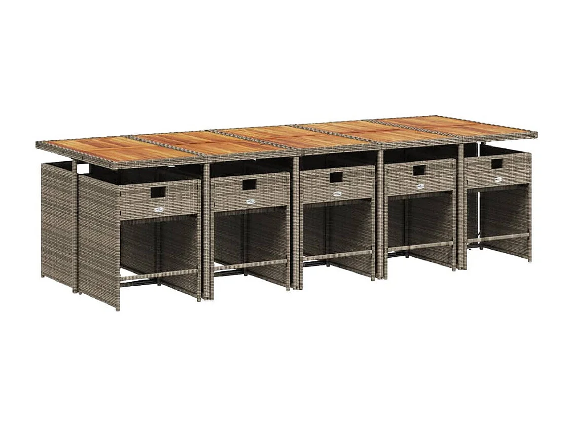 Ensemble à manger de jardin 11 pièces coussins gris résine tressée