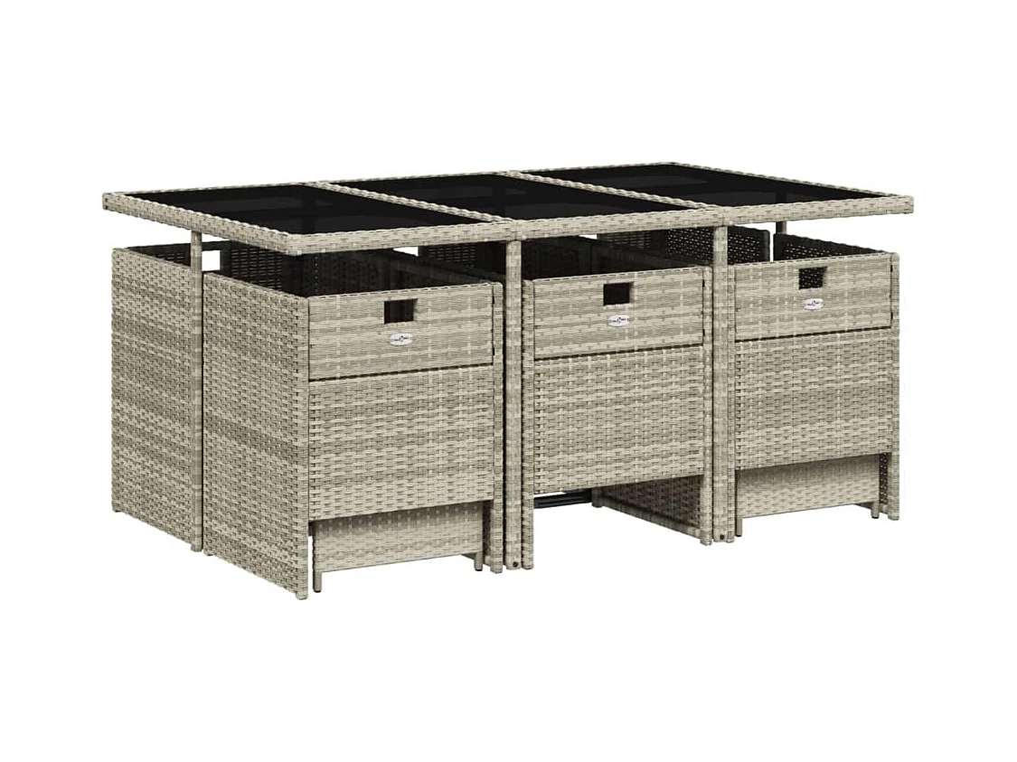Ensemble à manger de jardin 11pcs avec coussins gris poly rotin