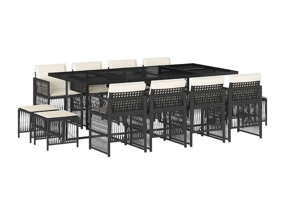 Ensemble à manger de jardin 13 pcs coussins noir résine tressée