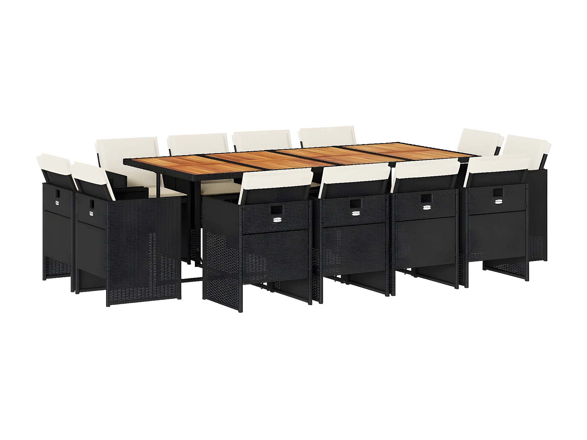 Ensemble à manger de jardin 13 pcs coussins noir résine tressée