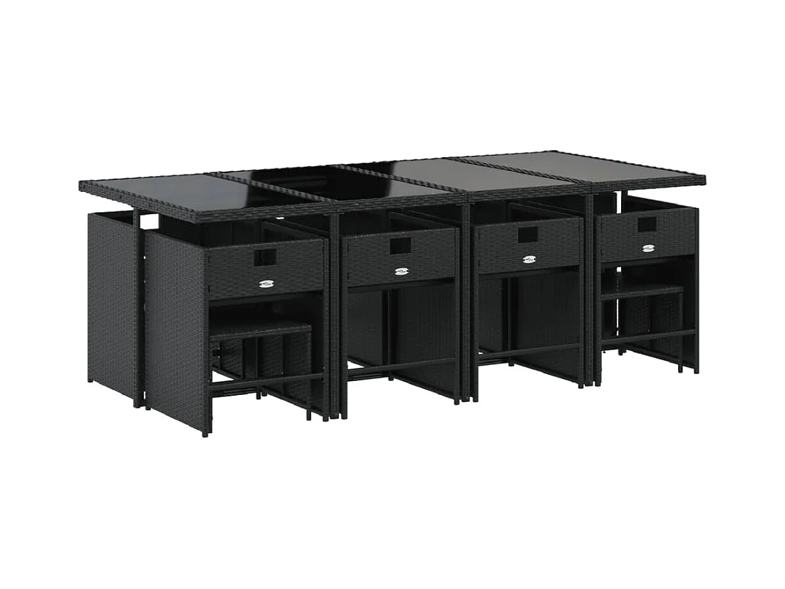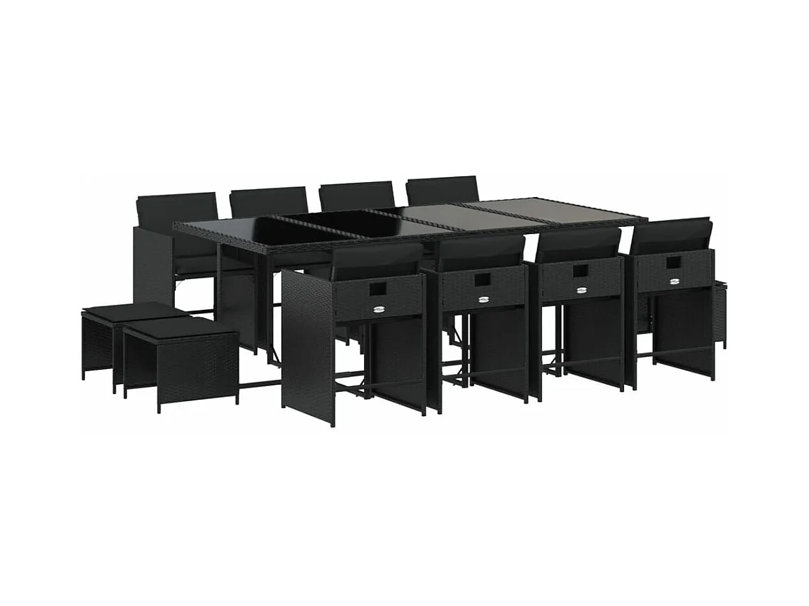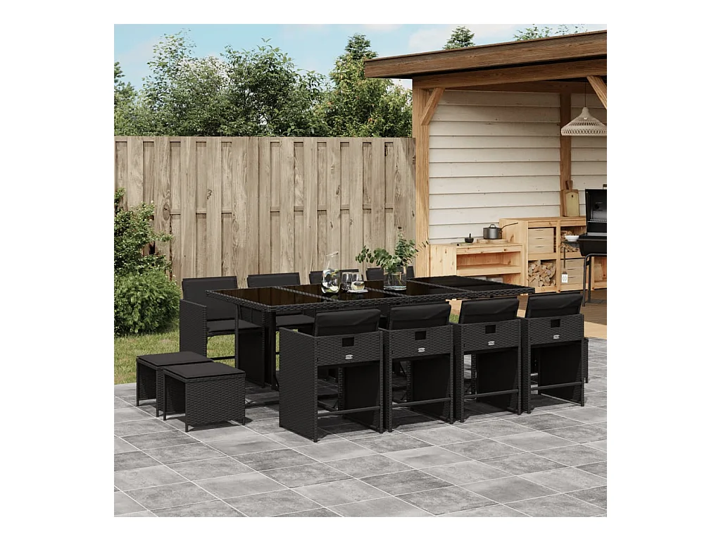 Ensemble à manger de jardin 13 pièces coussins noir résine tressée