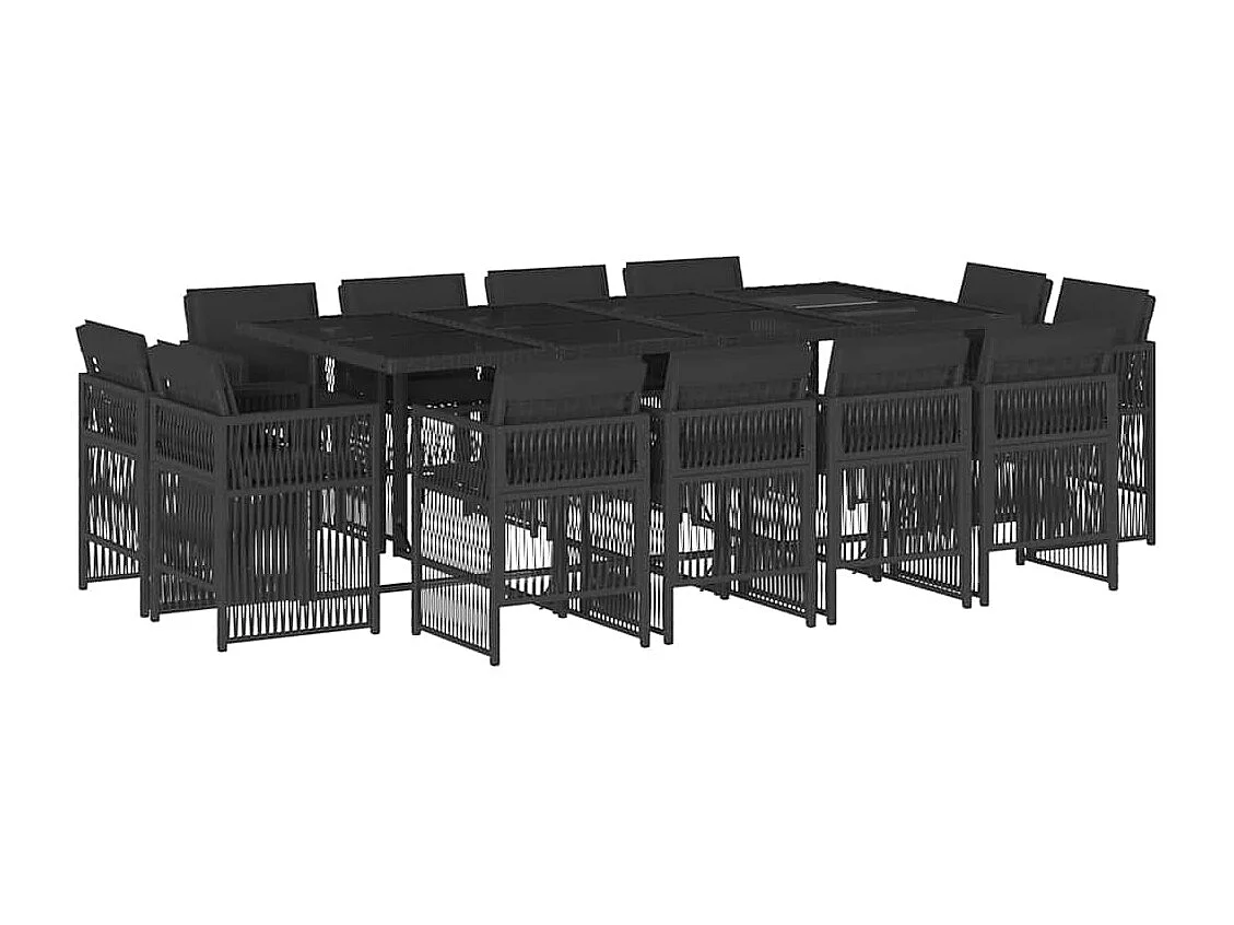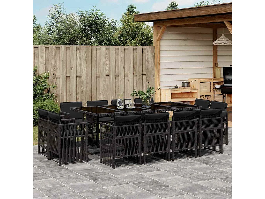 Ensemble à manger de jardin 13 pièces coussins noir résine tressée