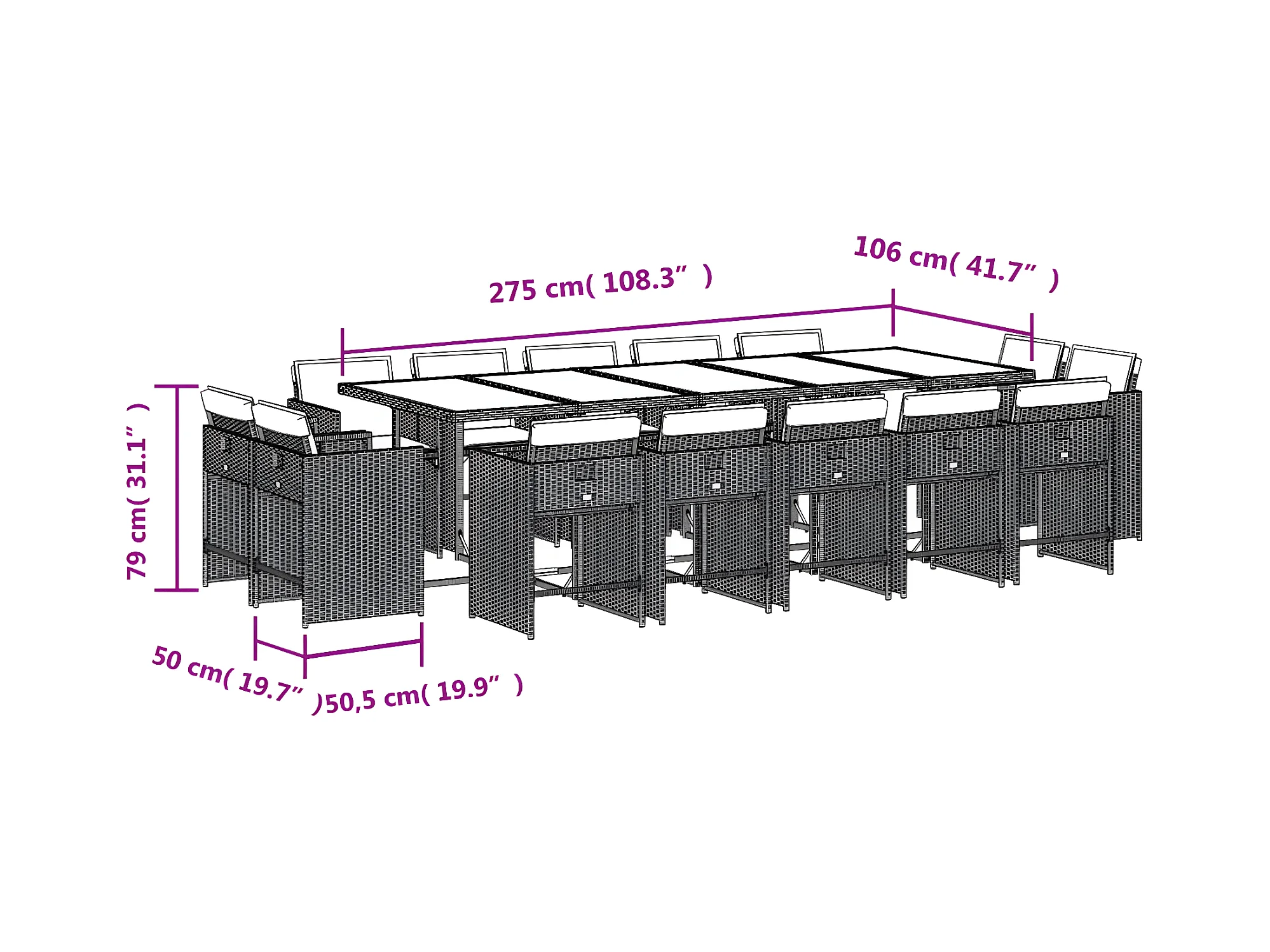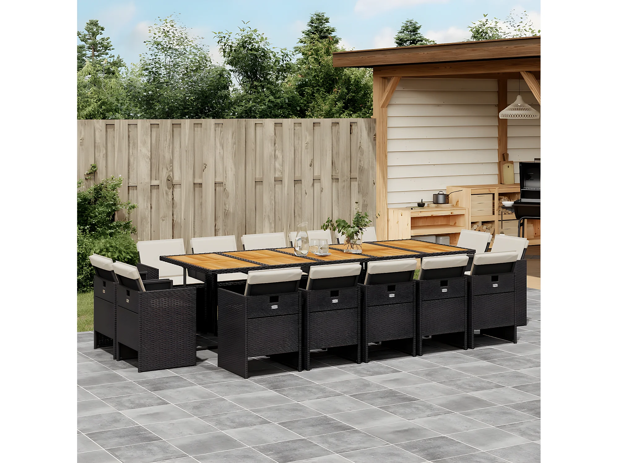 Ensemble à manger de jardin 15 pcs coussins noir résine tressée