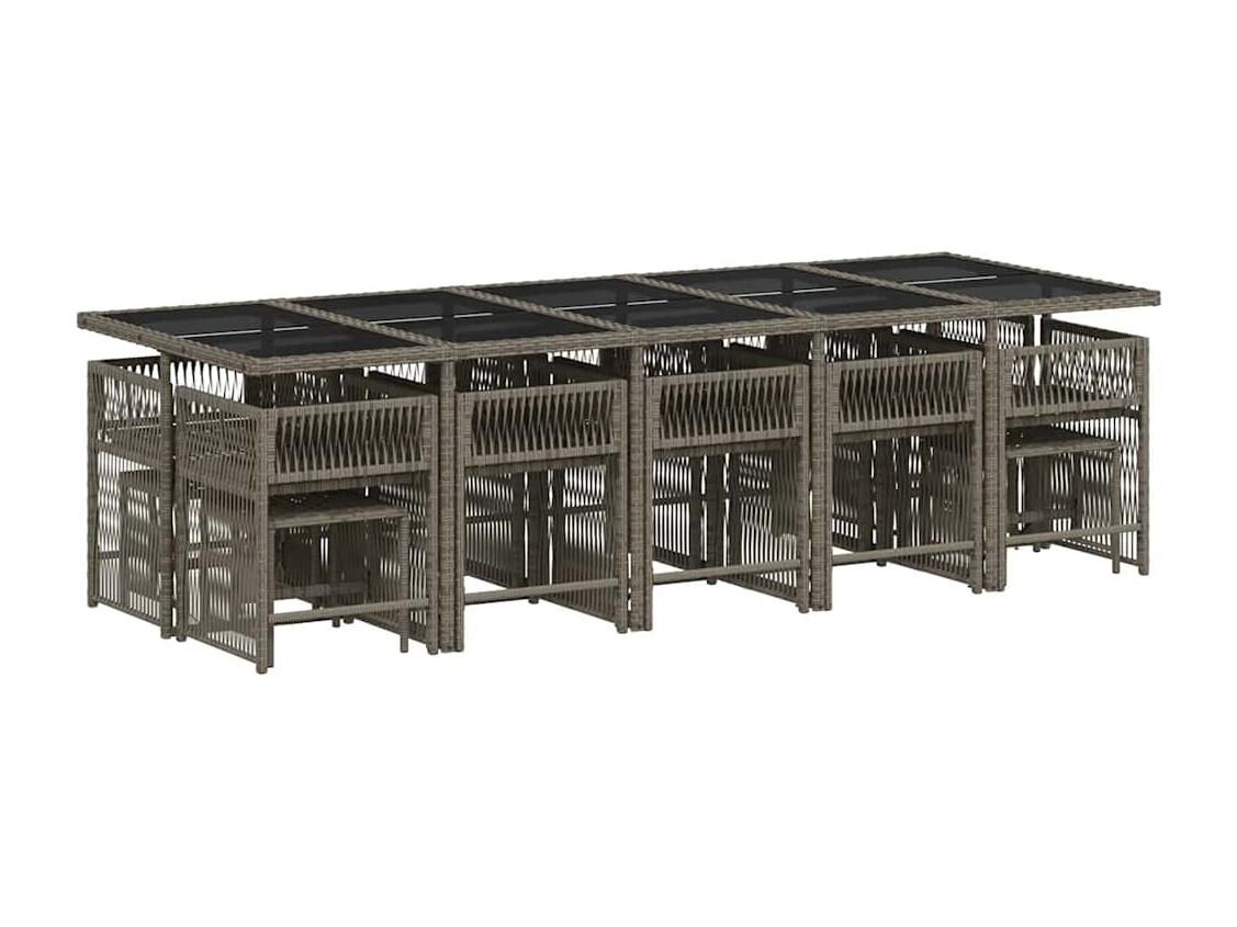Ensemble à manger de jardin 15 pièces coussins gris résine tressée