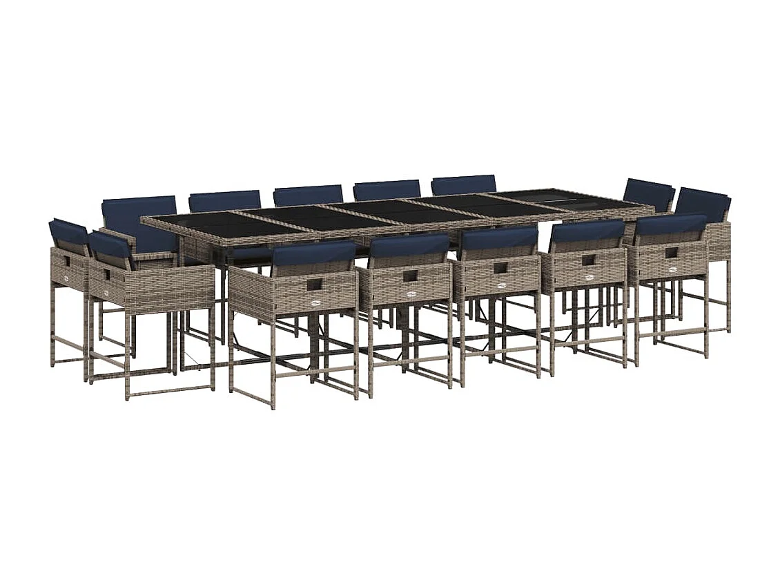 Ensemble à manger de jardin 15 pièces coussins gris résine tressée