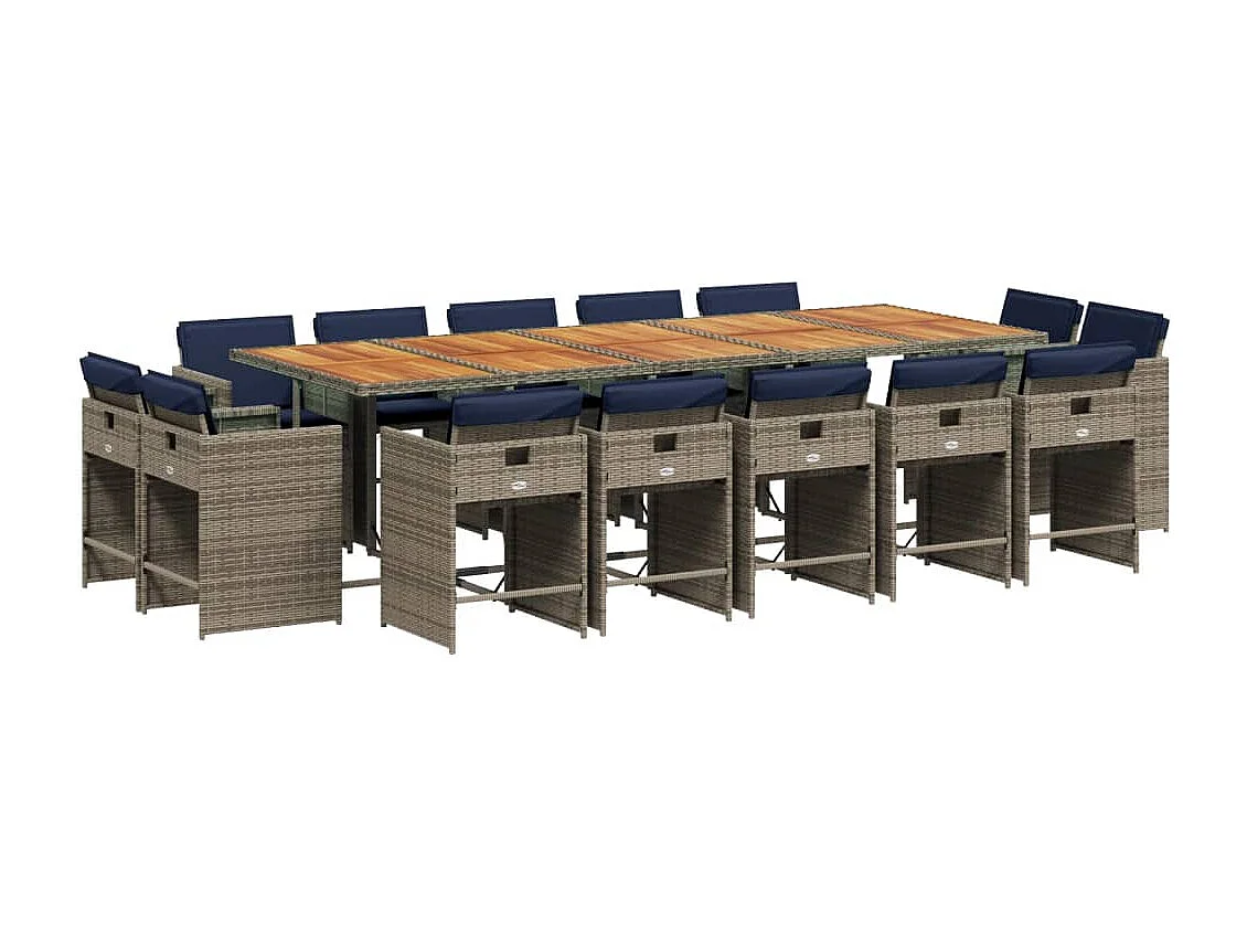 Ensemble à manger de jardin 15 pièces coussins gris résine tressée