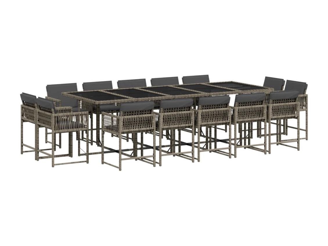 Ensemble à manger de jardin 15 pièces coussins gris résine tressée
