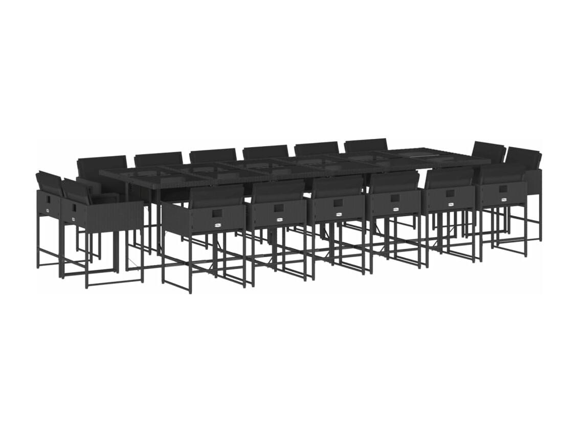 Ensemble à manger de jardin 17 pièces coussins noir résine tressée
