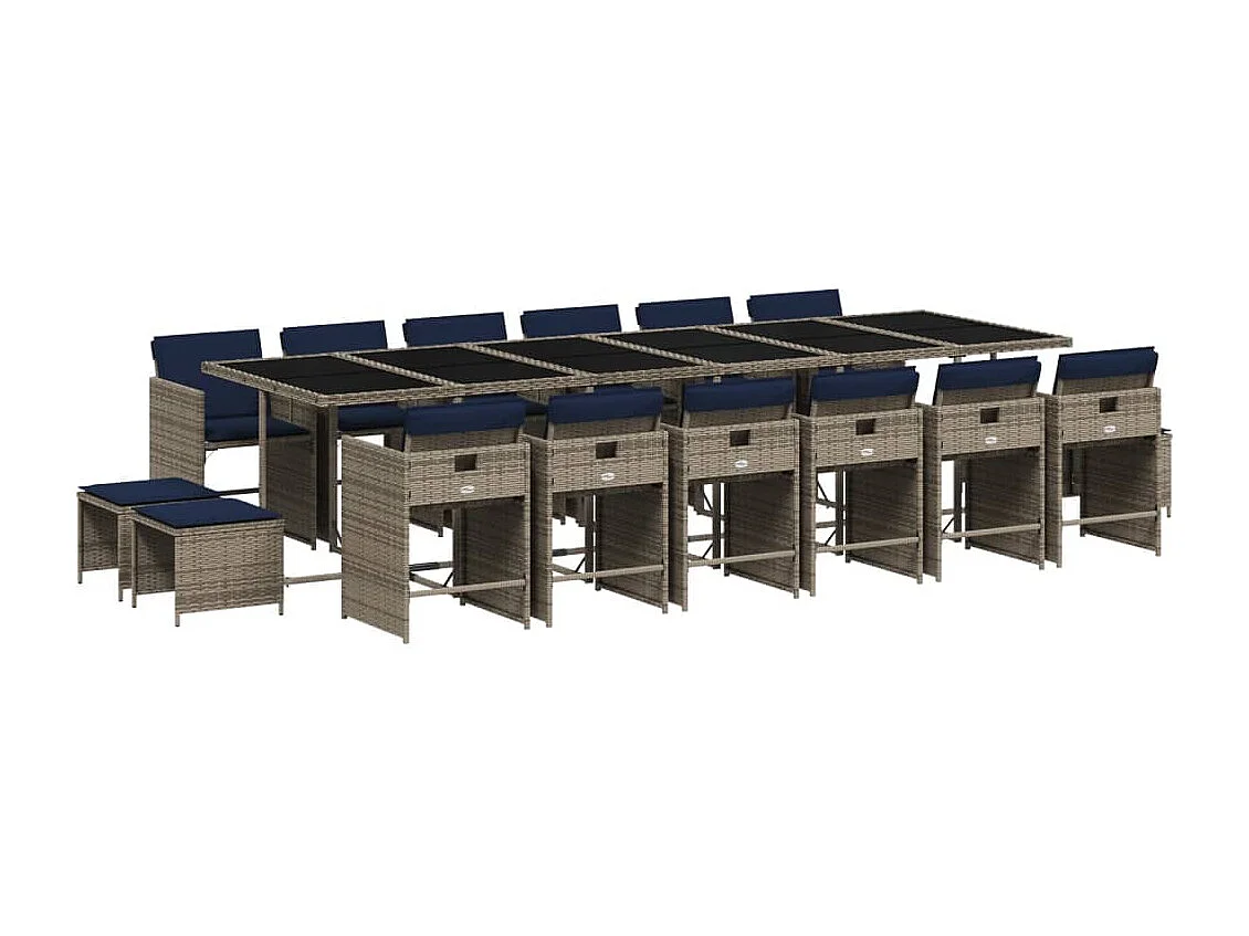Ensemble à manger de jardin 17 pièces et coussins résine tressée