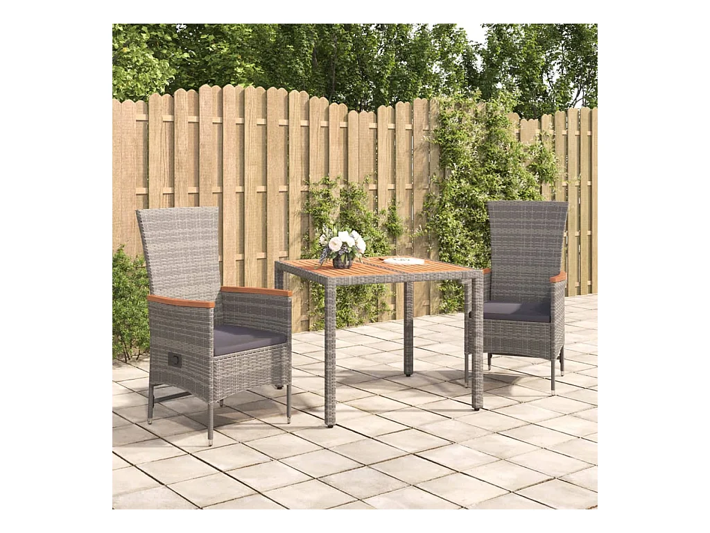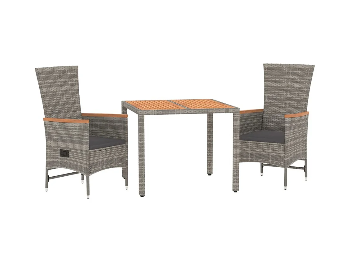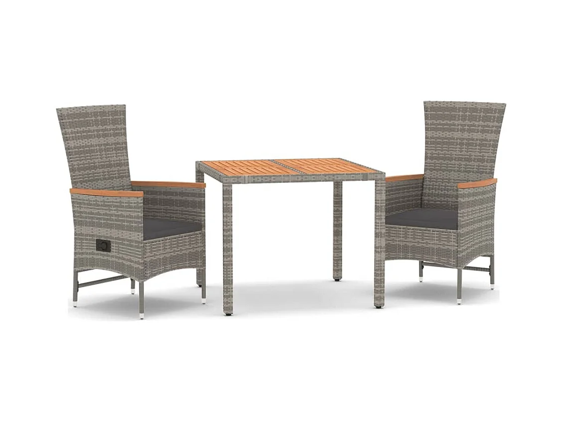 Ensemble à manger de jardin 3 pcs coussins gris résine tressée BE40754