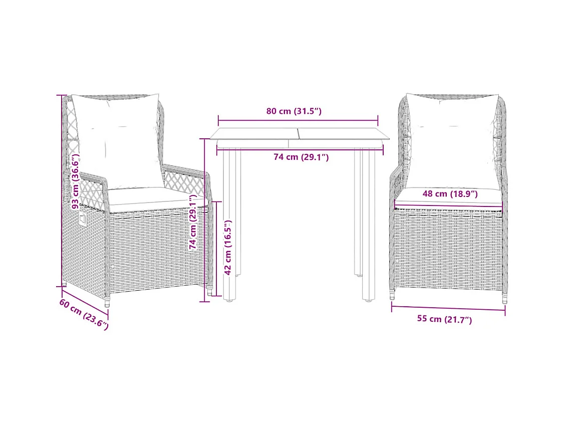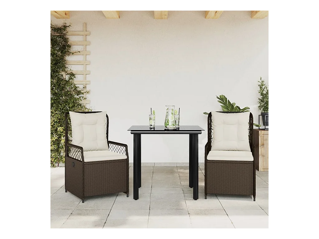 Ensemble à manger de jardin 3 pcs et coussins marron poly rotin