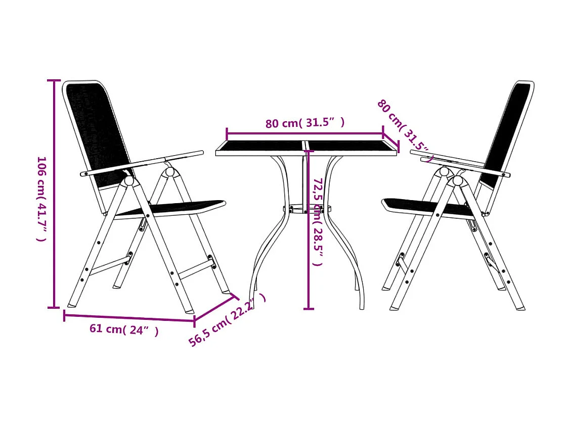 Ensemble à manger de jardin 3 pièces anthracite métal maille