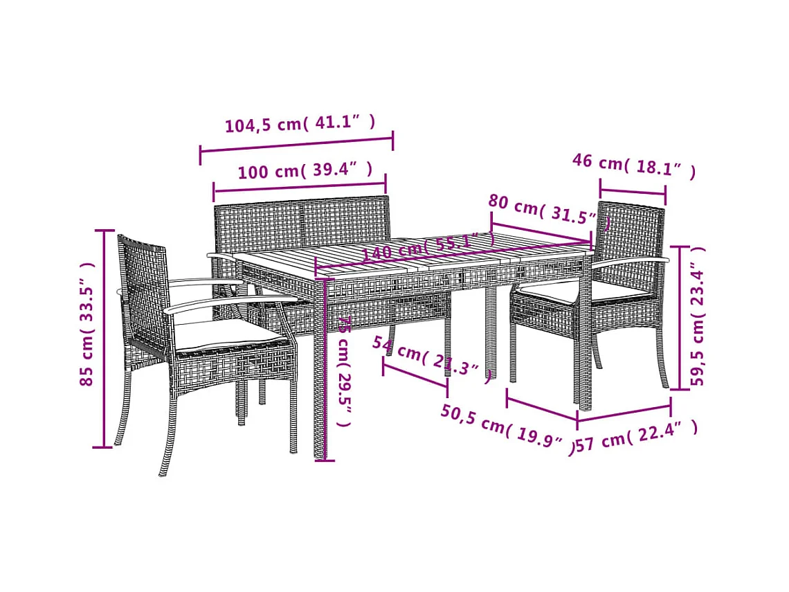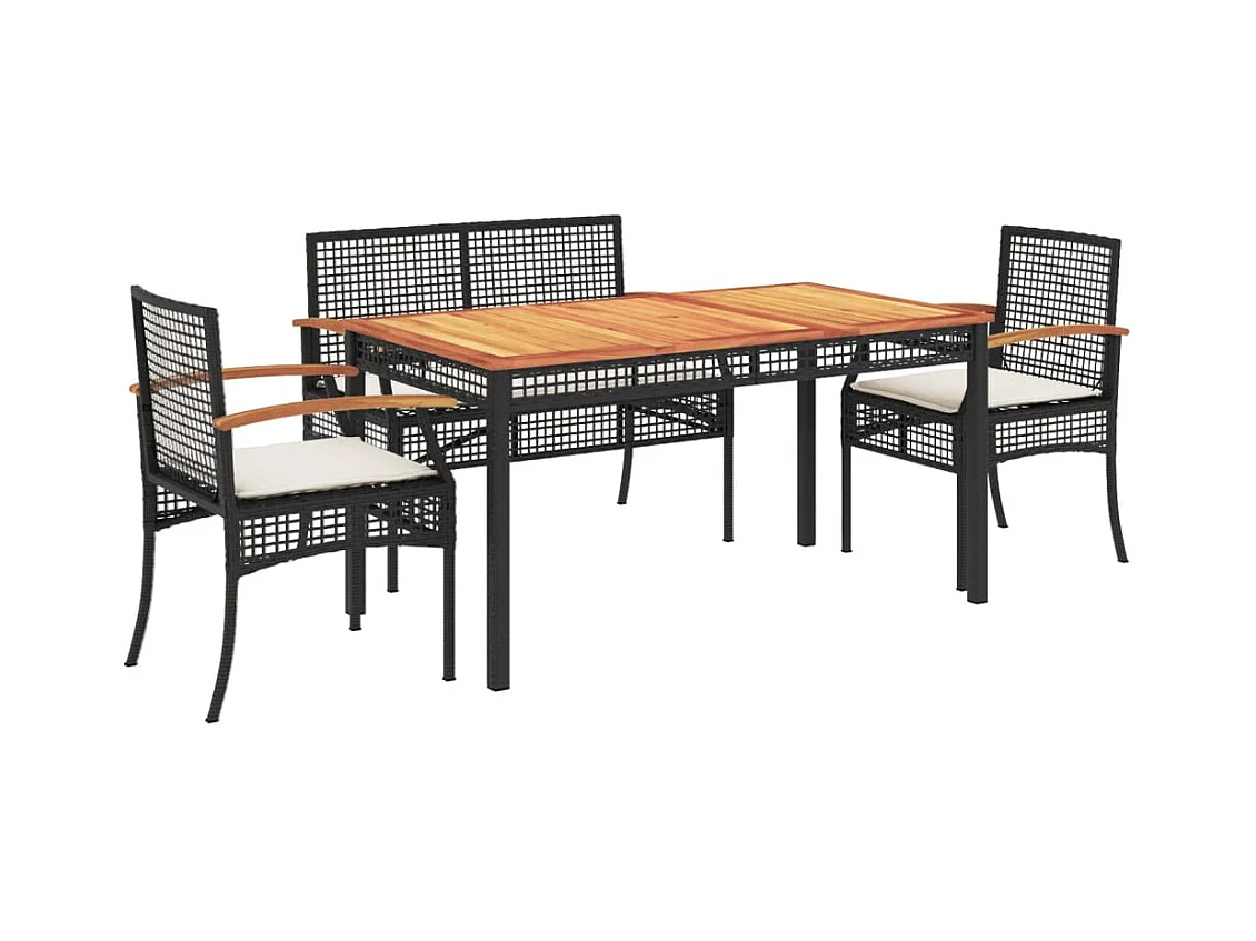 Ensemble à manger de jardin 4 pcs avec coussins noir