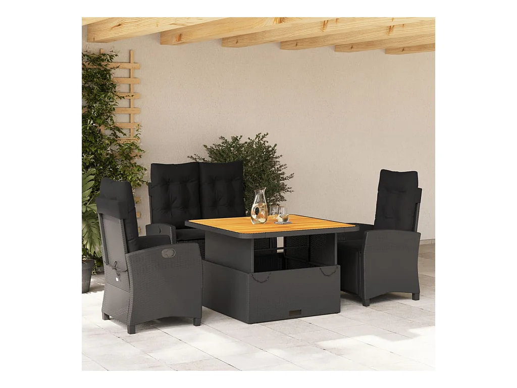 Ensemble à manger de jardin 4 pcs avec coussins noir