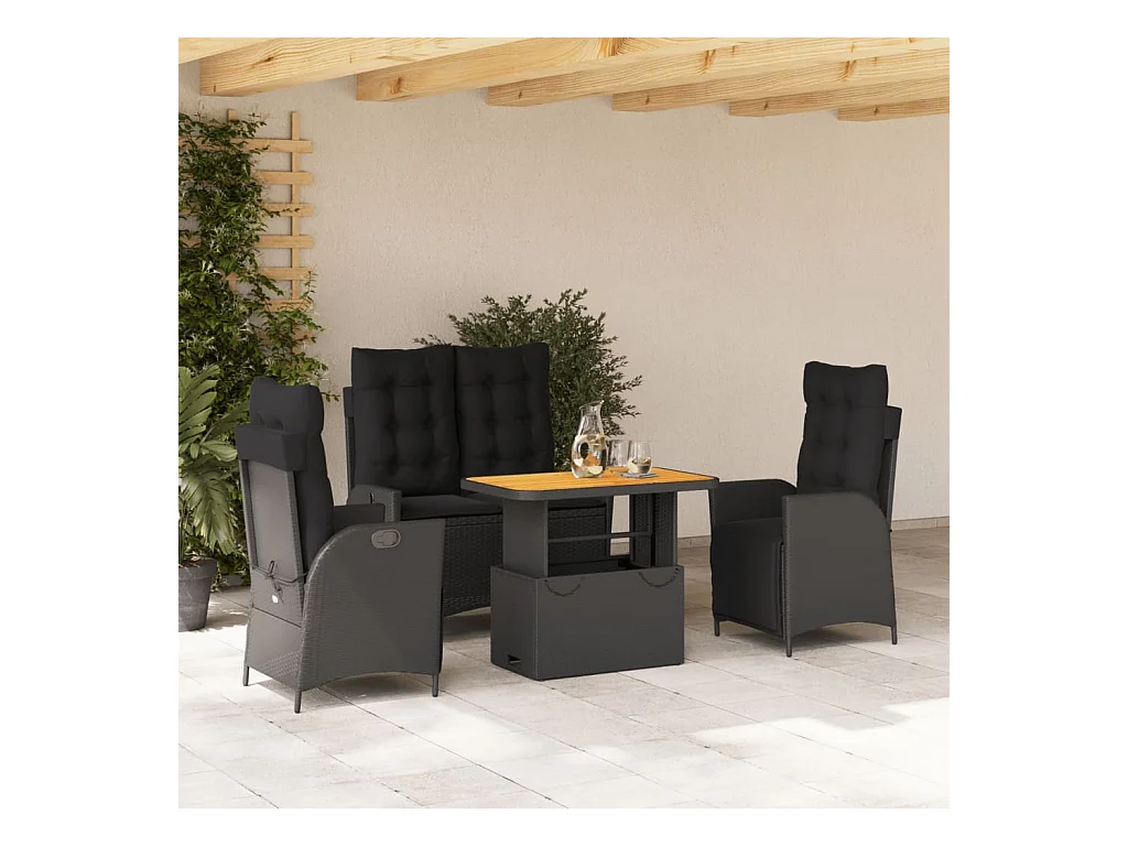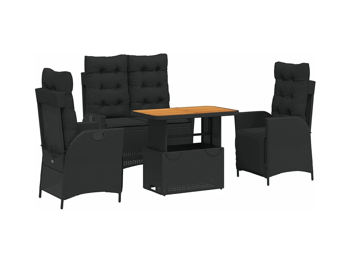Ensemble à manger de jardin 4 pcs avec coussins noir