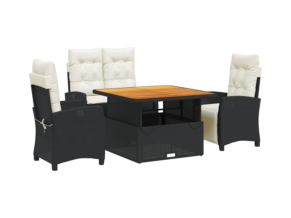Ensemble à manger de jardin 4 pcs avec coussins noir