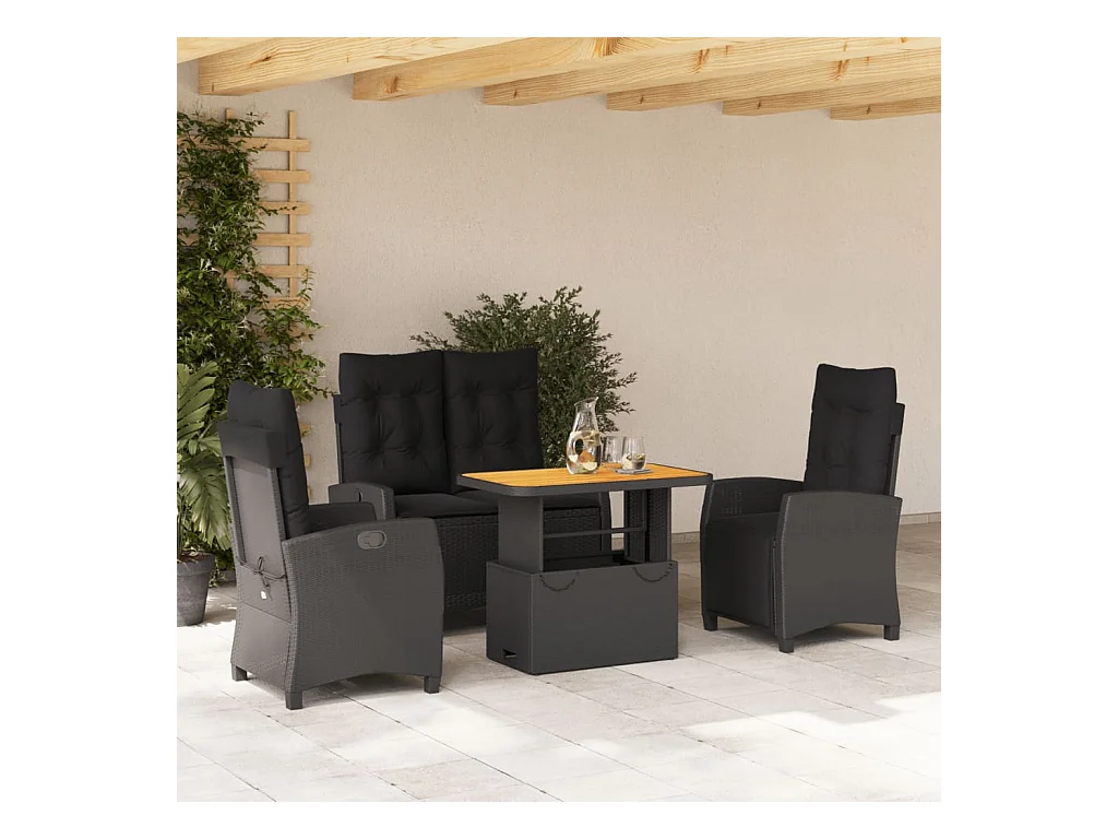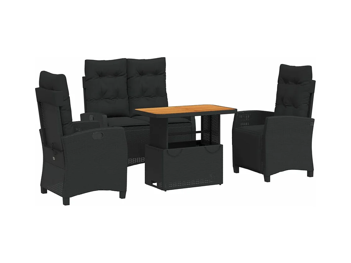 Ensemble à manger de jardin 4 pcs avec coussins noir