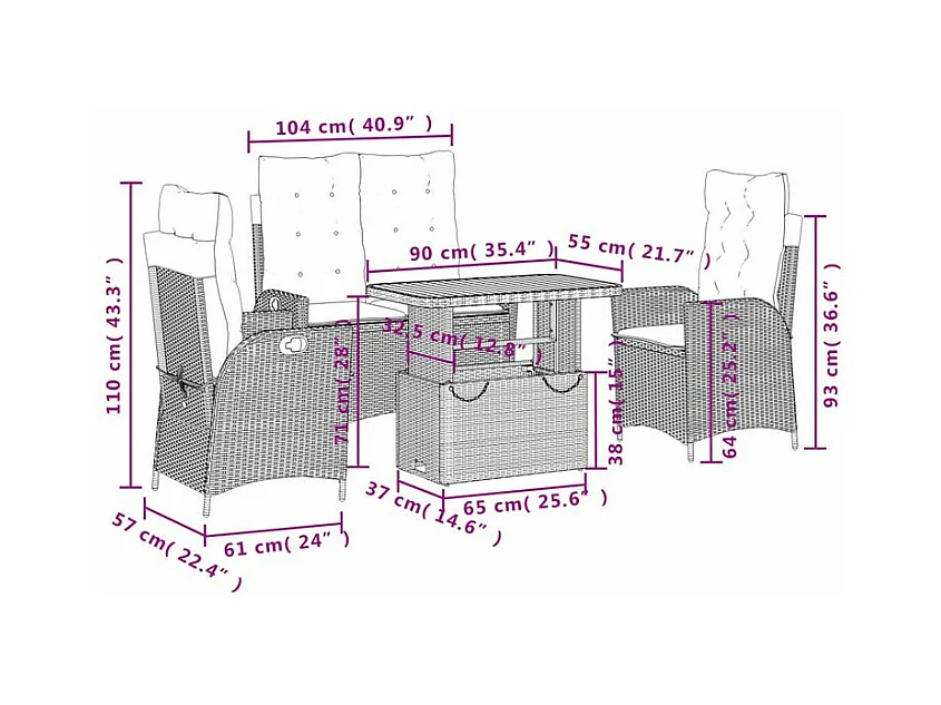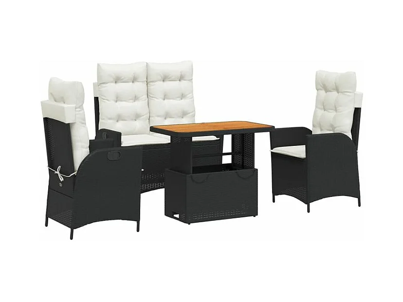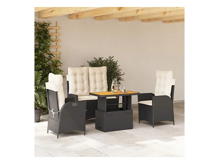 Ensemble à manger de jardin 4 pcs avec coussins noir