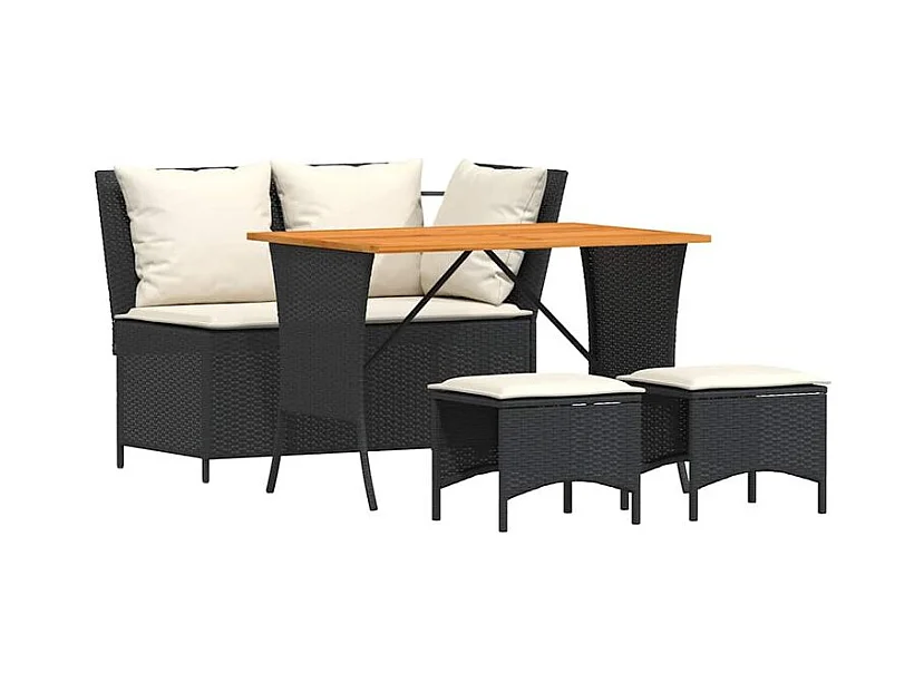 Ensemble à manger de jardin 4 pcs avec coussins noir