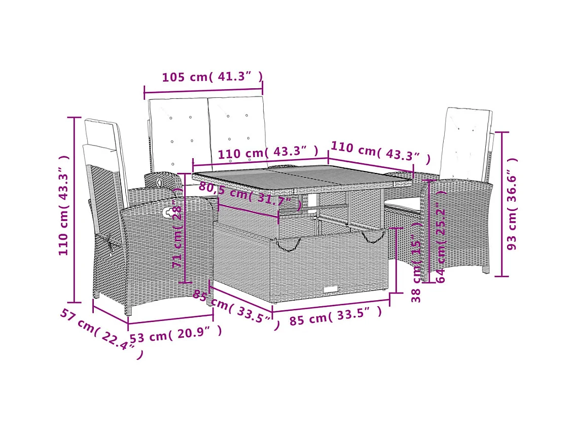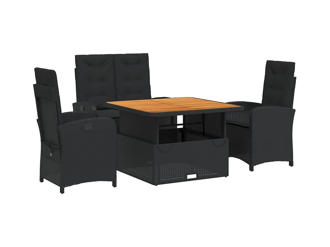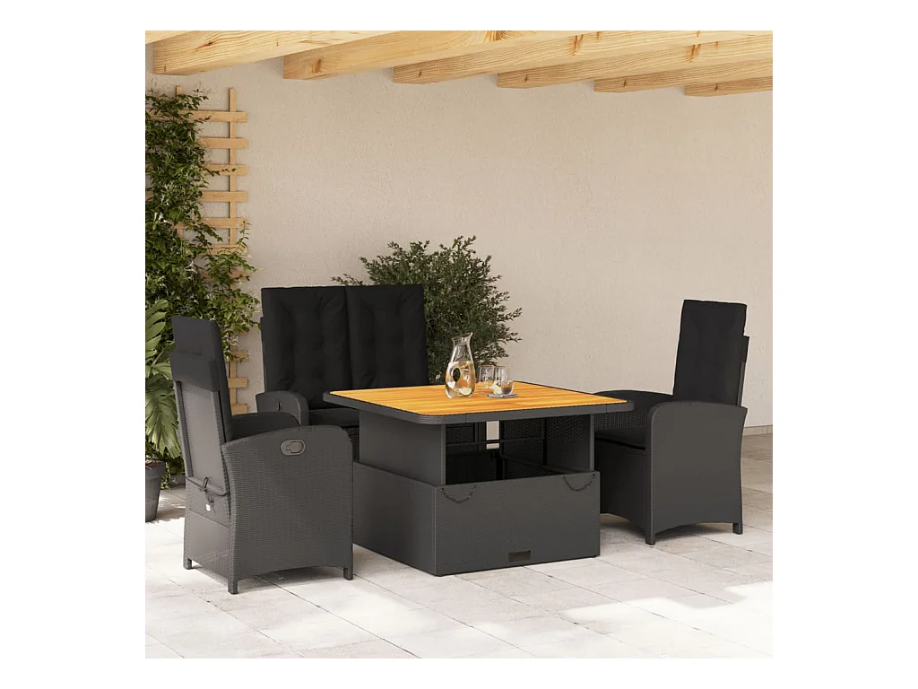Ensemble à manger de jardin 4 pcs avec coussins noir