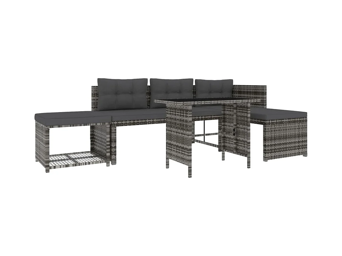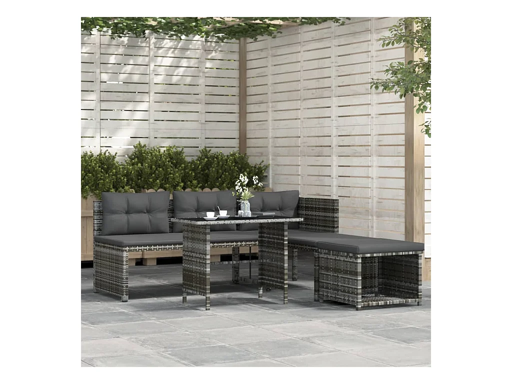 Ensemble à manger de jardin 4pcs coussins Gris Résine tressée
