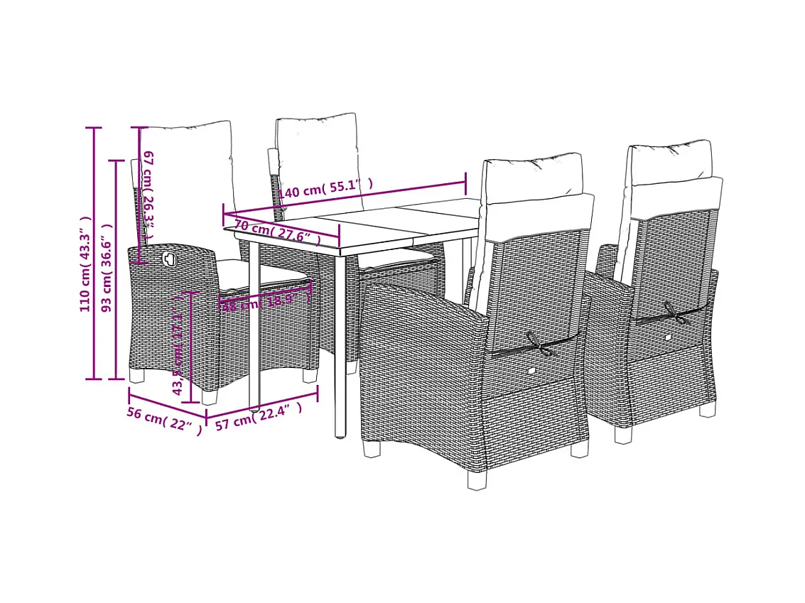 Ensemble à manger de jardin 5 pcs coussins gris résine tressée