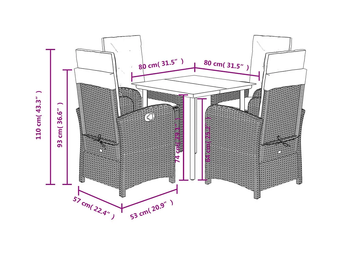 Ensemble à manger de jardin 5 pcs coussins gris résine tressée
