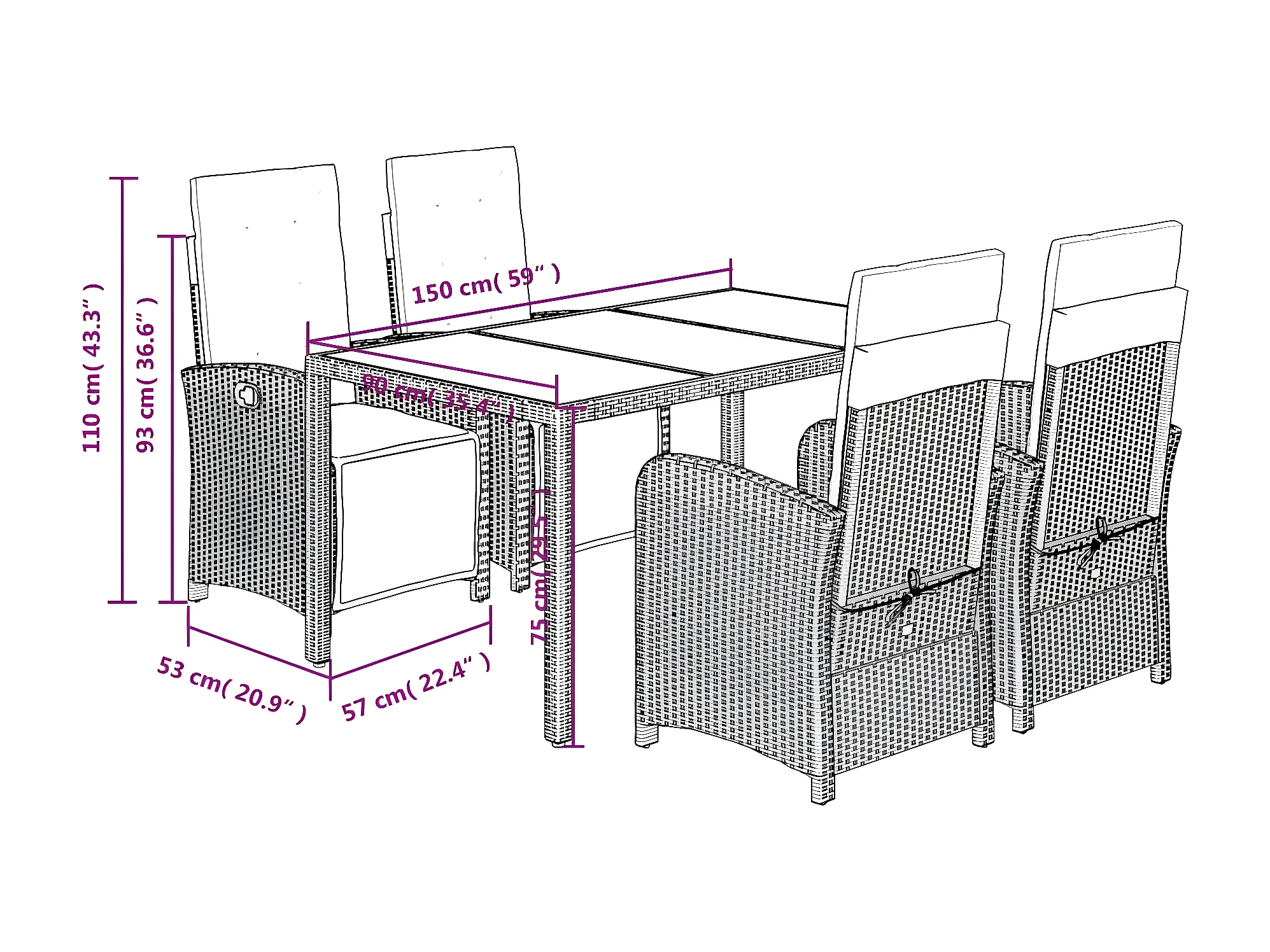 Ensemble à manger de jardin 5 pcs coussins gris résine tressée