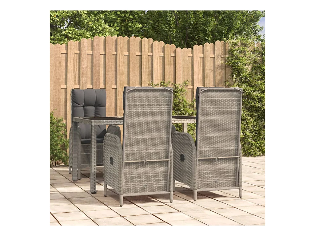 Ensemble à manger de jardin 5 pcs coussins gris résine tressée