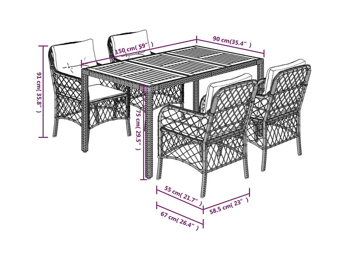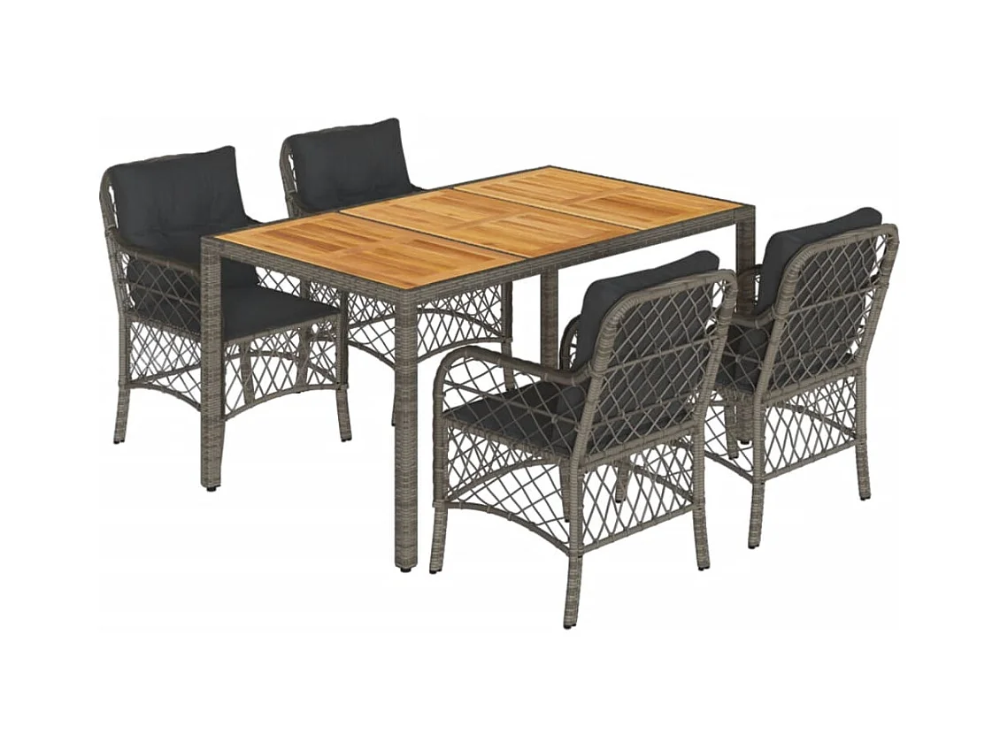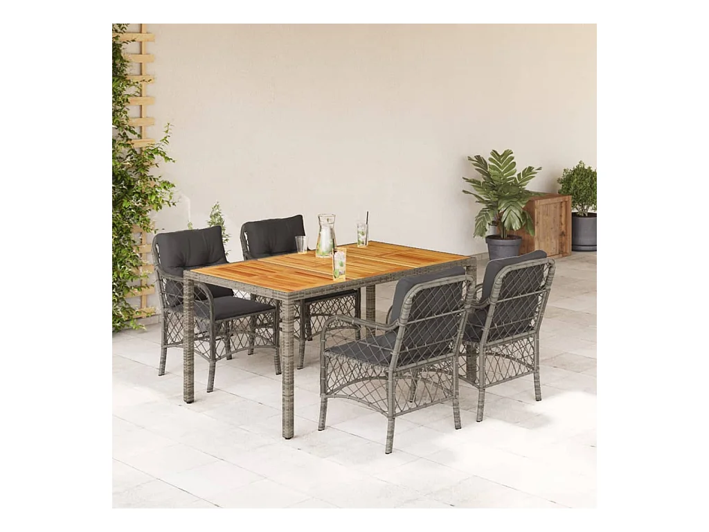 Ensemble à manger de jardin 5 pcs coussins gris résine tressée