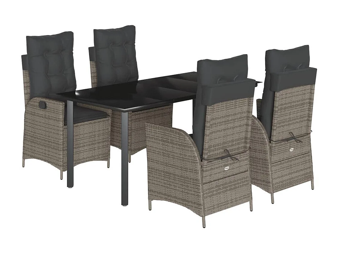 Ensemble à manger de jardin 5 pcs coussins gris résine tressée