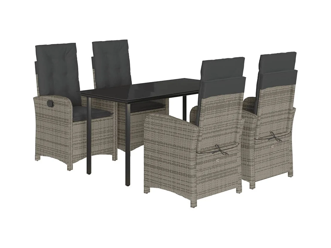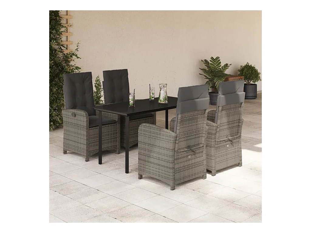 Ensemble à manger de jardin 5 pcs coussins gris résine tressée