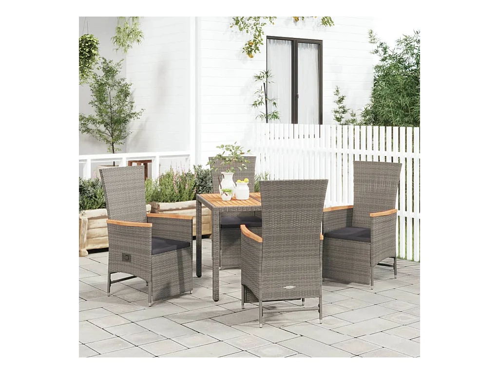 Ensemble à manger de jardin 5 pcs coussins gris résine tressée