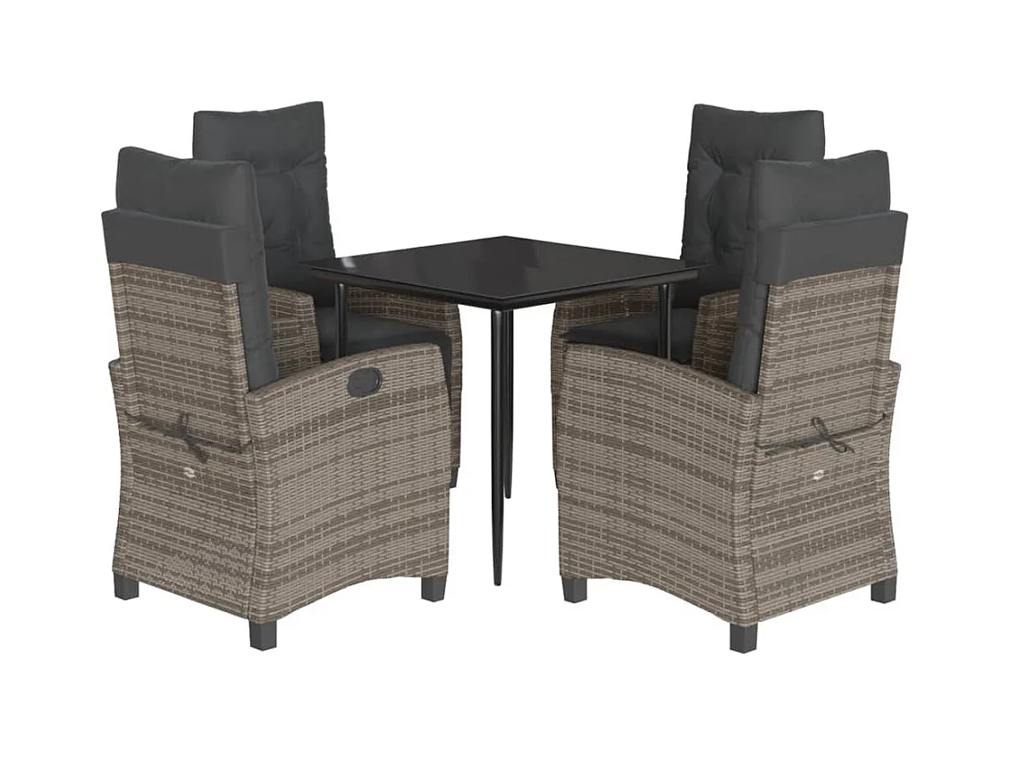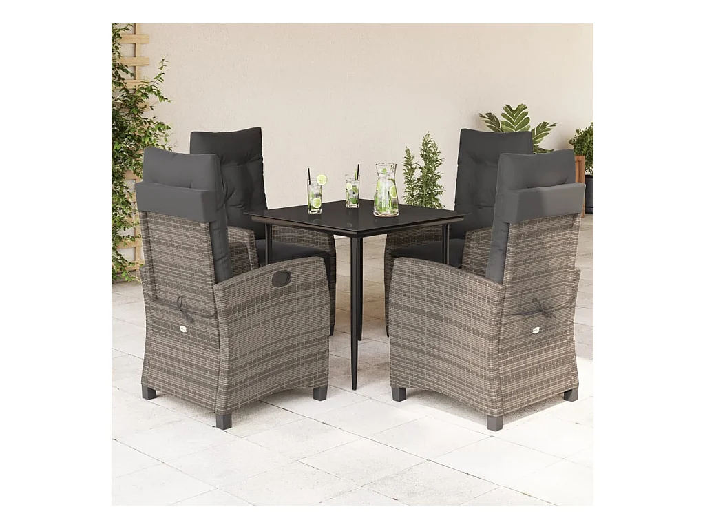 Ensemble à manger de jardin 5 pcs coussins gris résine tressée