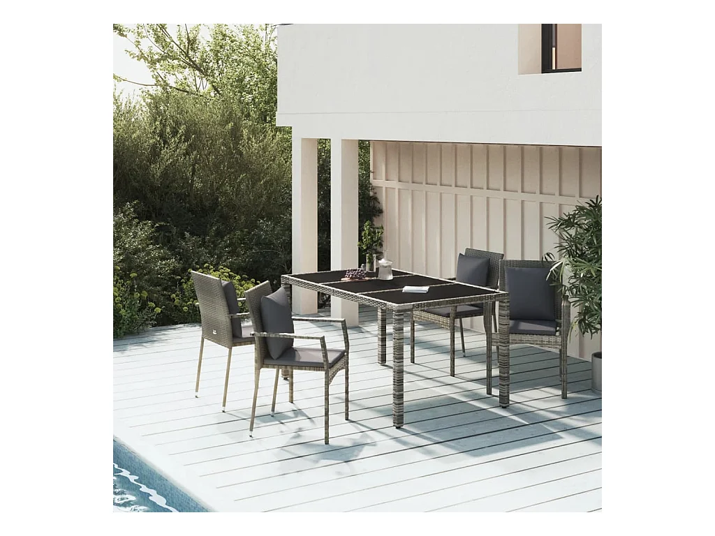 Ensemble à manger de jardin 5 pcs coussins gris résine tressée
