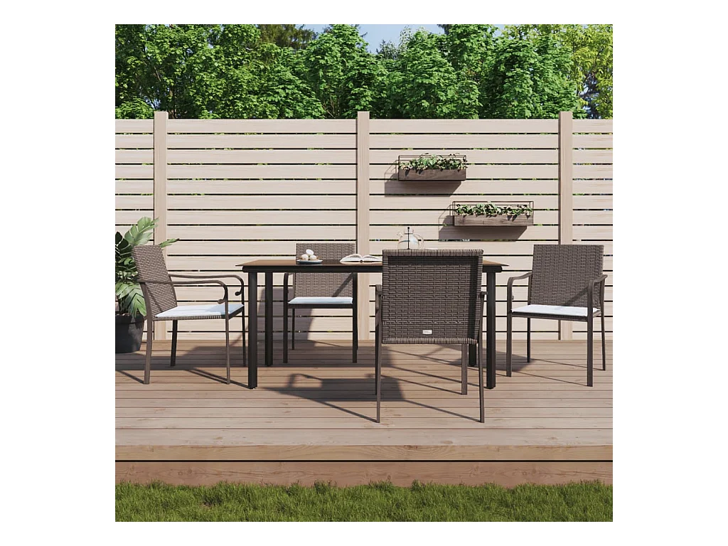 Ensemble à manger de jardin 5 pcs coussins résine tressée acier