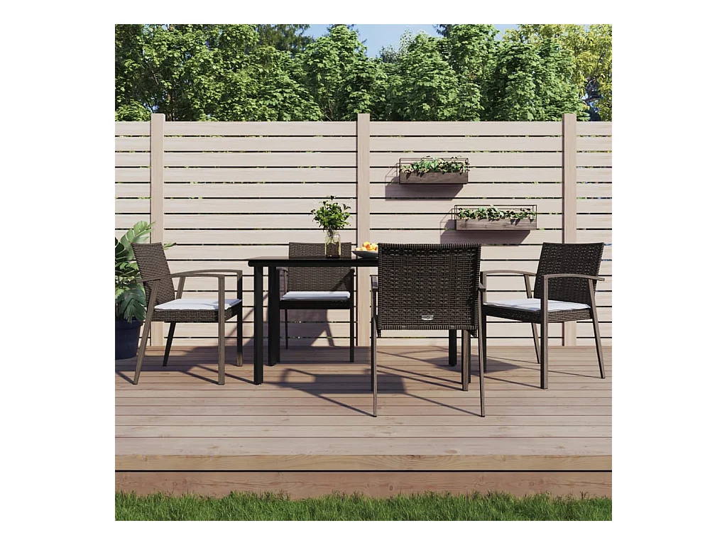 Ensemble à manger de jardin 5 pcs coussins résine tressée acier
