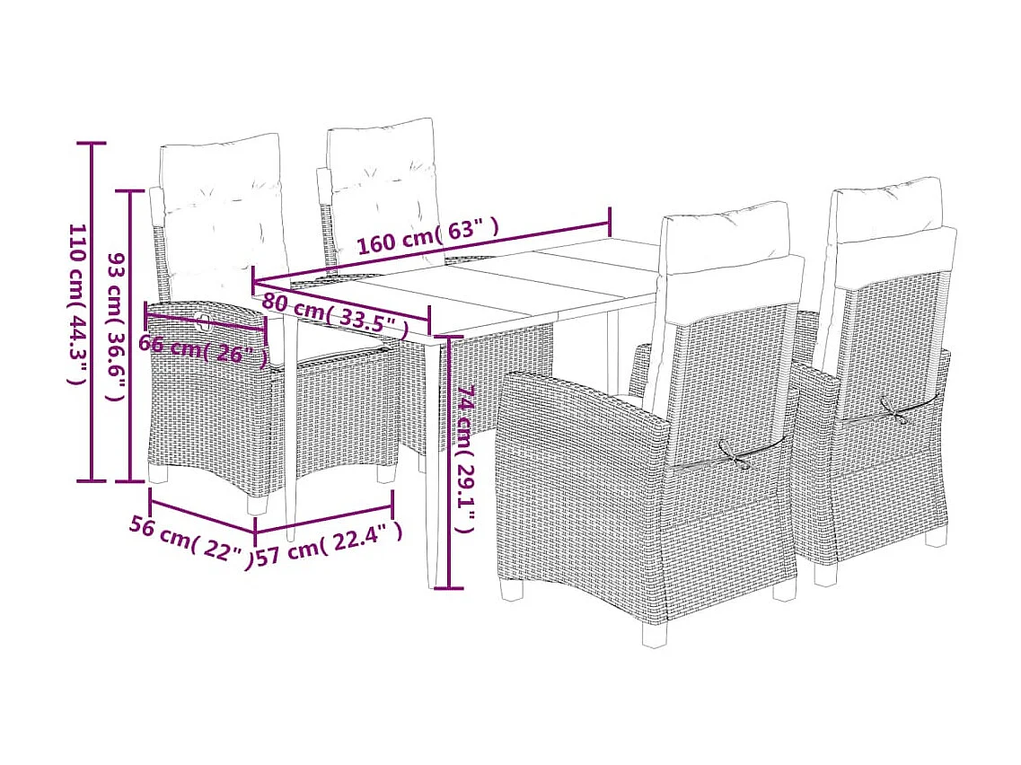Ensemble à manger de jardin 5 pcs et coussins marron poly rotin