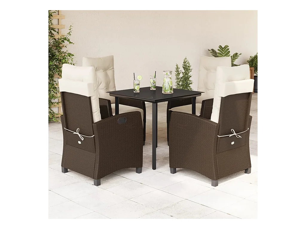 Ensemble à manger de jardin 5 pcs et coussins marron poly rotin